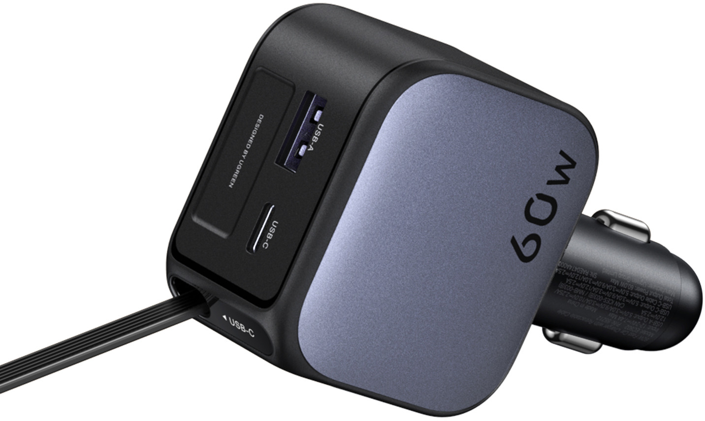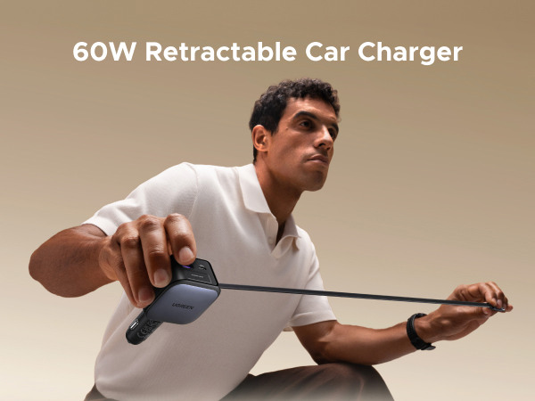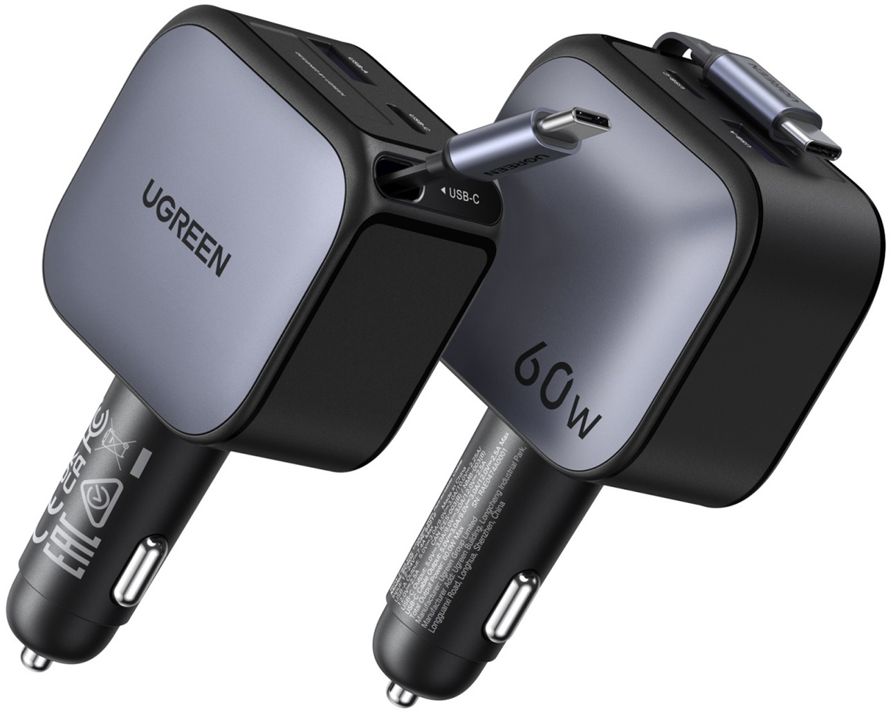 UGREEN Fast Car Charger 2-Port 60W 55212B Retractable Cable 321577-ITC
