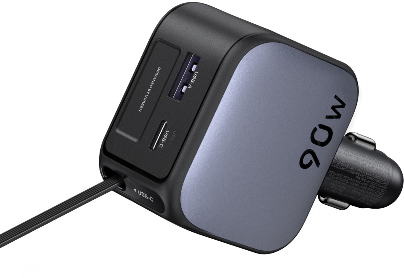 UGREEN Fast Car Charger 2-Port 90W 55909B Retractable Cable 321578-ITC