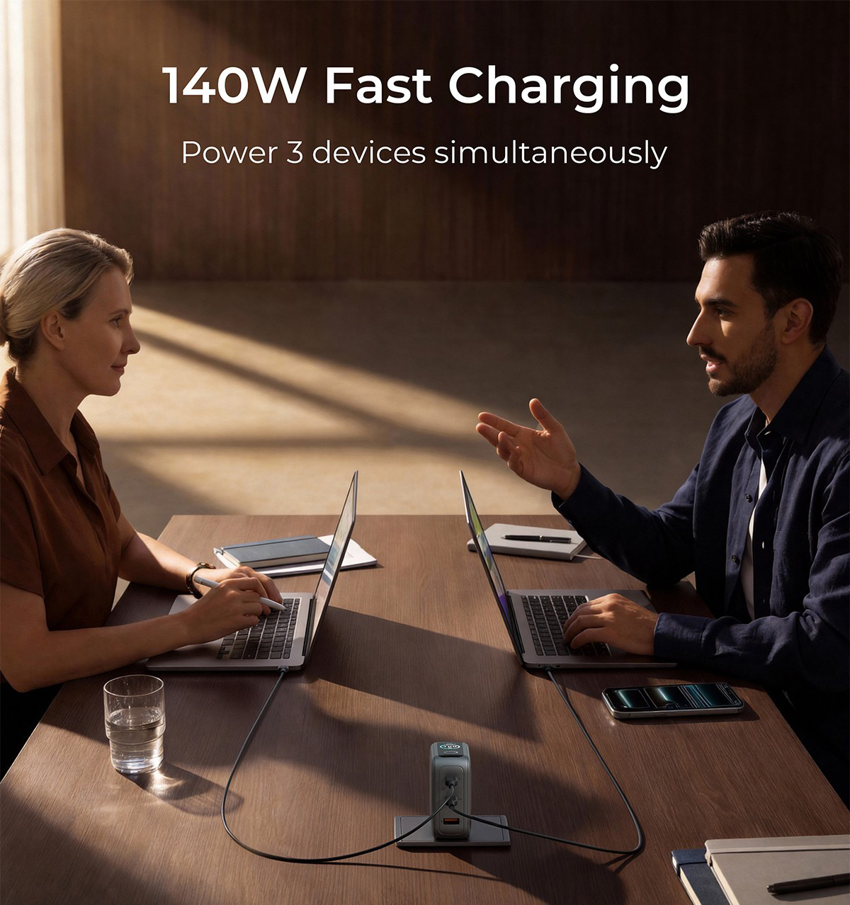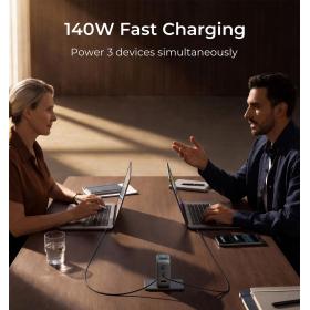- 140-W-Hyper-Schnellladen: Liefert eine maximale Ausgangsleistung von 140 W über einen einzelnen USB-C-1- oder USB-C-2-Anschluss. Mit dem PD3.1-Protokoll und 140-W-Schnellladefunktion lädt dieses Ladegerät ein MacBook Pro 16 von 0 % auf 56 % in nur 30 Minuten (mit einem USB-C-Kabel mit 140 W Leistung). Es lädt Flaggschiff-Smartphones und -Tablets mit Höchstgeschwindigkeit. (Unterstützt die neueste iPhone 17-Serie mit effizientem 40-W-Schnellladen.)