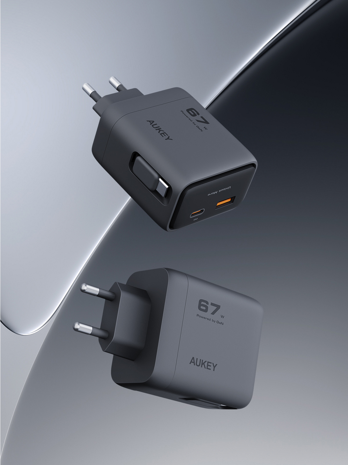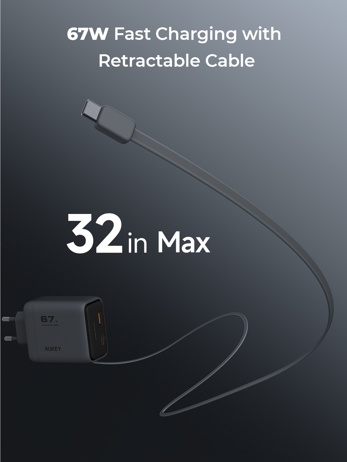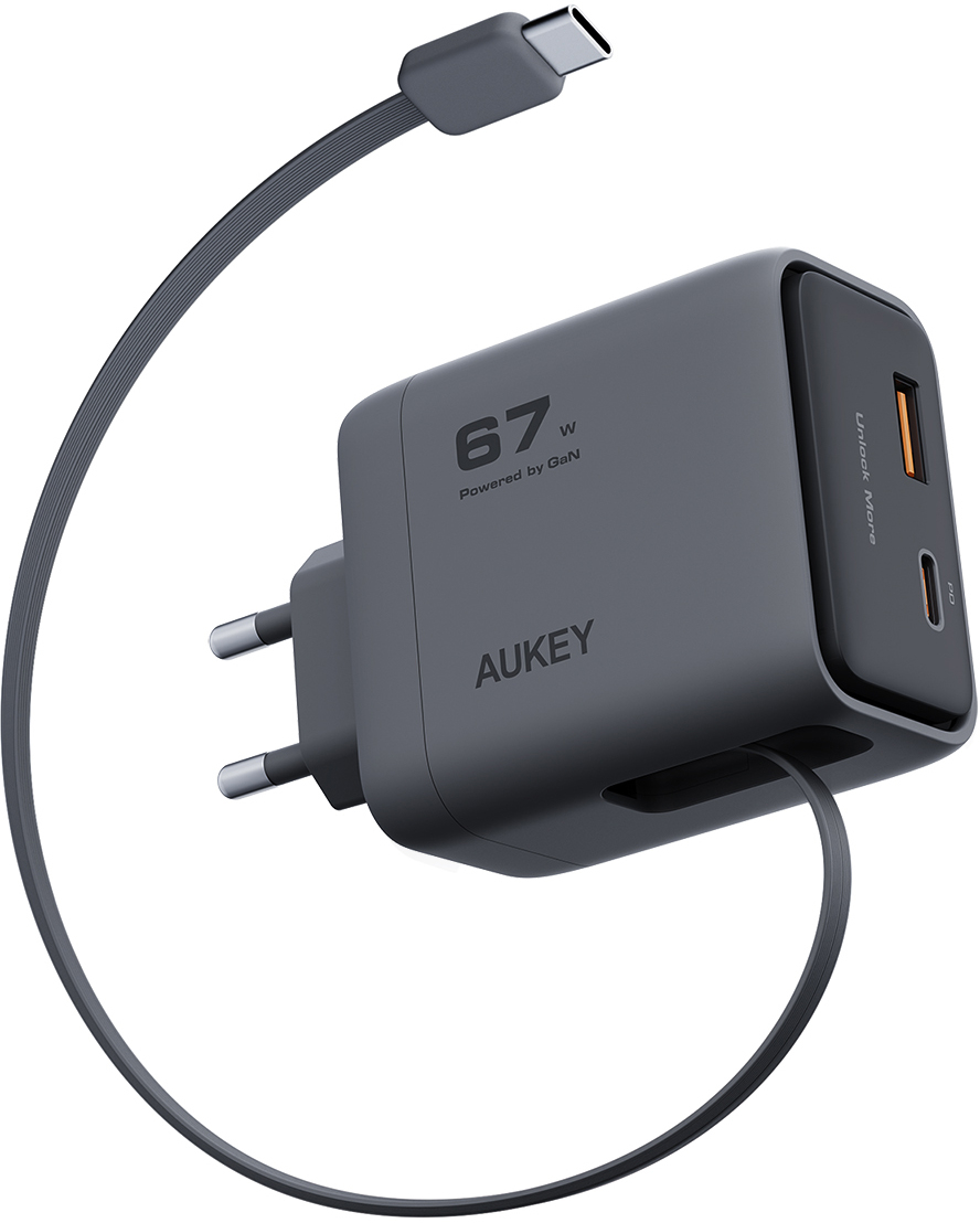 AUKEY Comet Reel Wallcharger 67W PA-C12 GaN,PD,Retrecta. USB-C Cable 321743-ITC