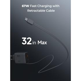 • Überlegene Leistung: Profitieren Sie von schnellem, zuverlässigem und sicherem Laden zu einem erschwinglichen und äußerst attraktiven Preis. Dank des praktischen, einziehbaren Kabels und der starken Leistung von 67 W bietet es Ihnen den großen Vorteil, die meisten Ihrer Geräte schnell und bequem aufzuladen - ganz ohne zusätzliche Kabel, egal ob zu Hause, im Büro oder unterwegs.
