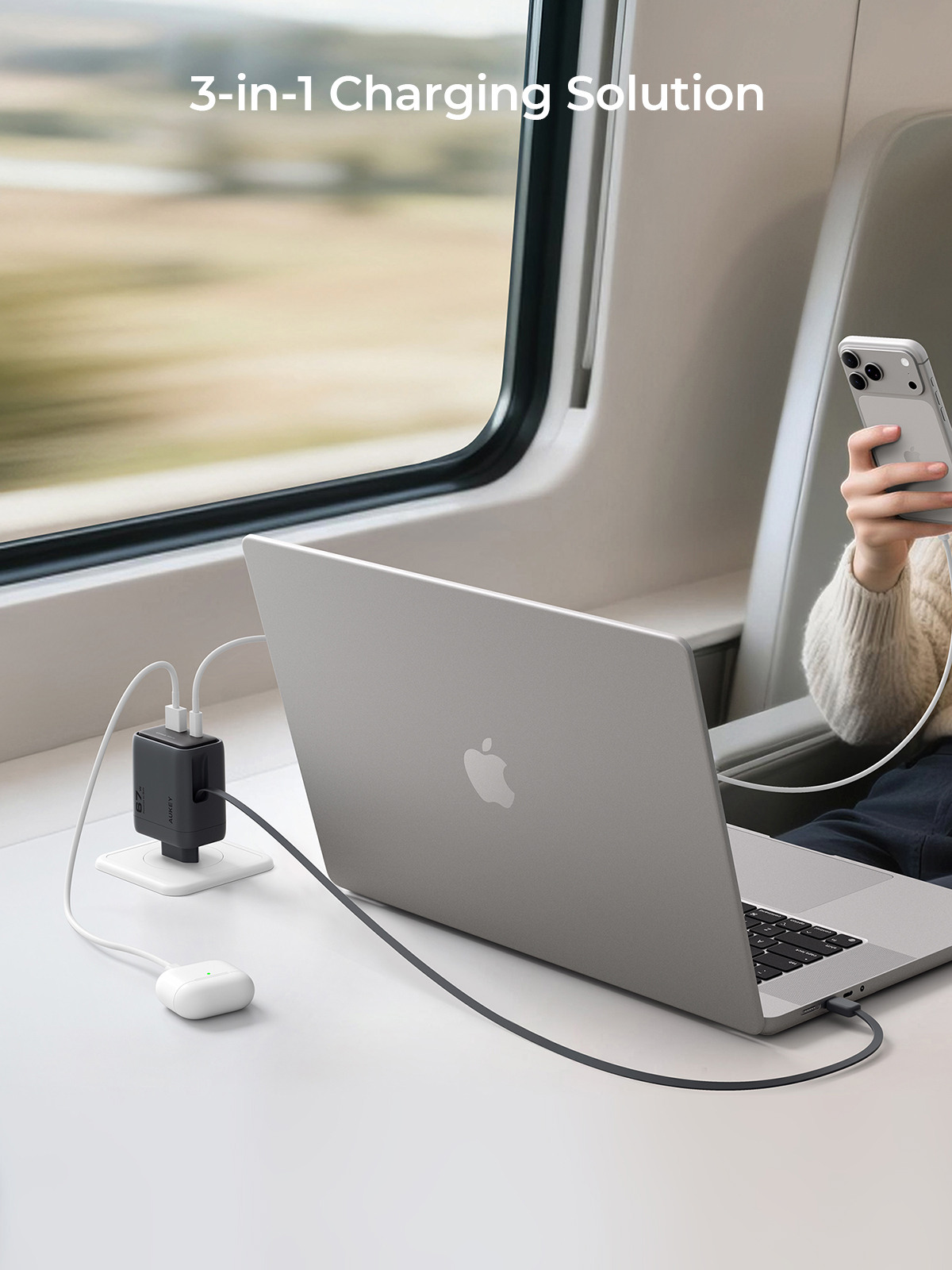 • 67-W-Hochgeschwindigkeitsladung: Liefert eine maximale Ausgangsleistung von 67 W über einen einzigen USB-C-Anschluss. Lädt ein MacBook Air M2 in nur 30 Minuten von 0 % auf 50 % (PD 3.0-Protokoll).