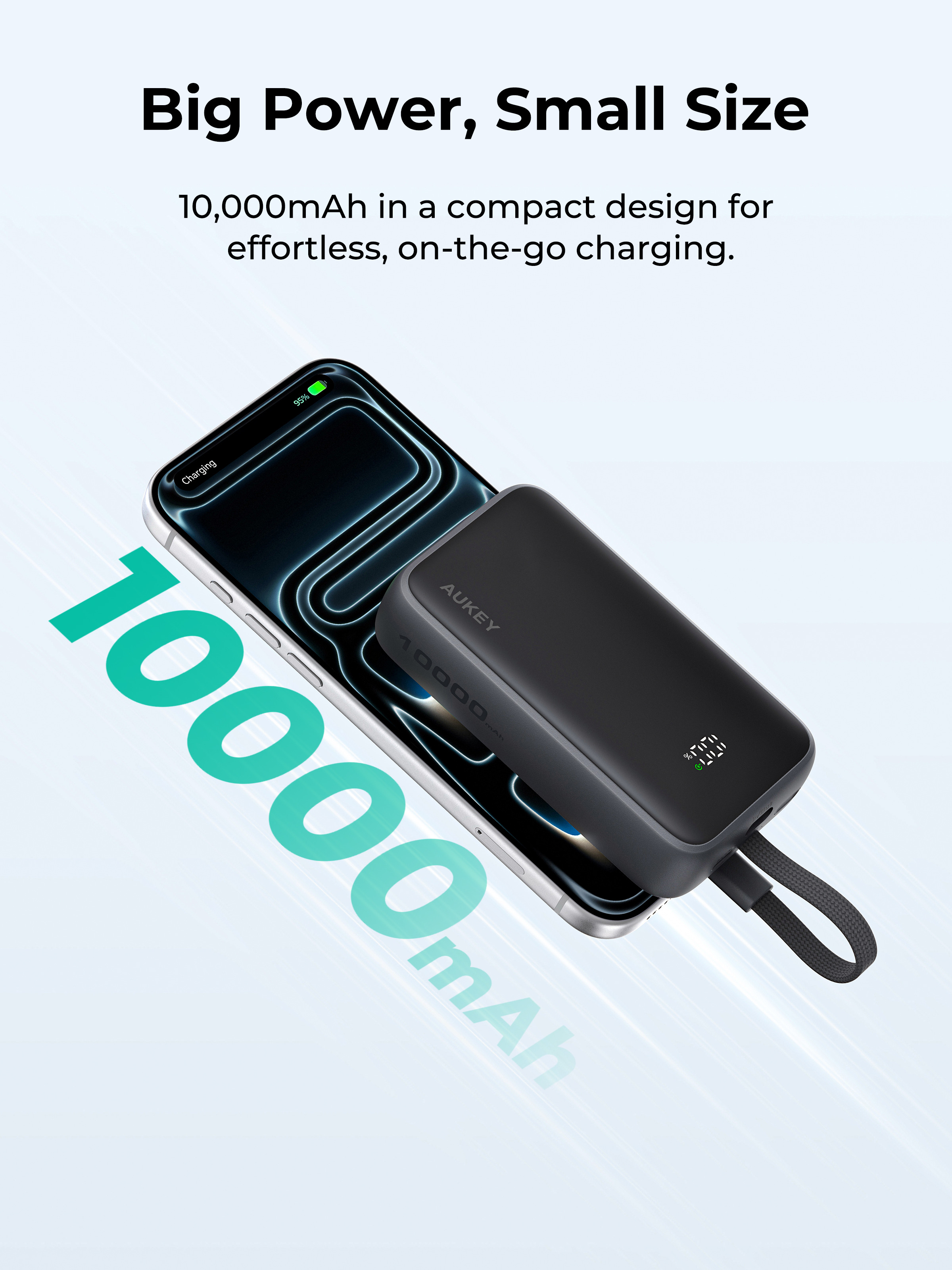 - Kompakt und tragbar: Die Powerbank ist kompakt und verfügt über eine große Akkukapazität von 10.000 mAh. Sie ist leicht zu transportieren und bietet Nutzern hohe Mobilität und Komfort.