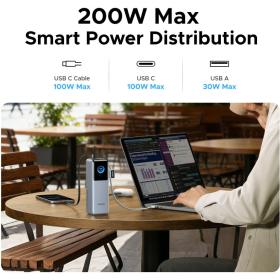 100-W-Schnellladung, 200 W Gesamtleistung: Laden Sie ein MacBook Pro (M4) in nur 30 Minuten auf 54 %. Laden Sie bis zu 4 Geräte gleichzeitig mit flexiblen Anschlusskombinationen und 100-W-Schnellladung.