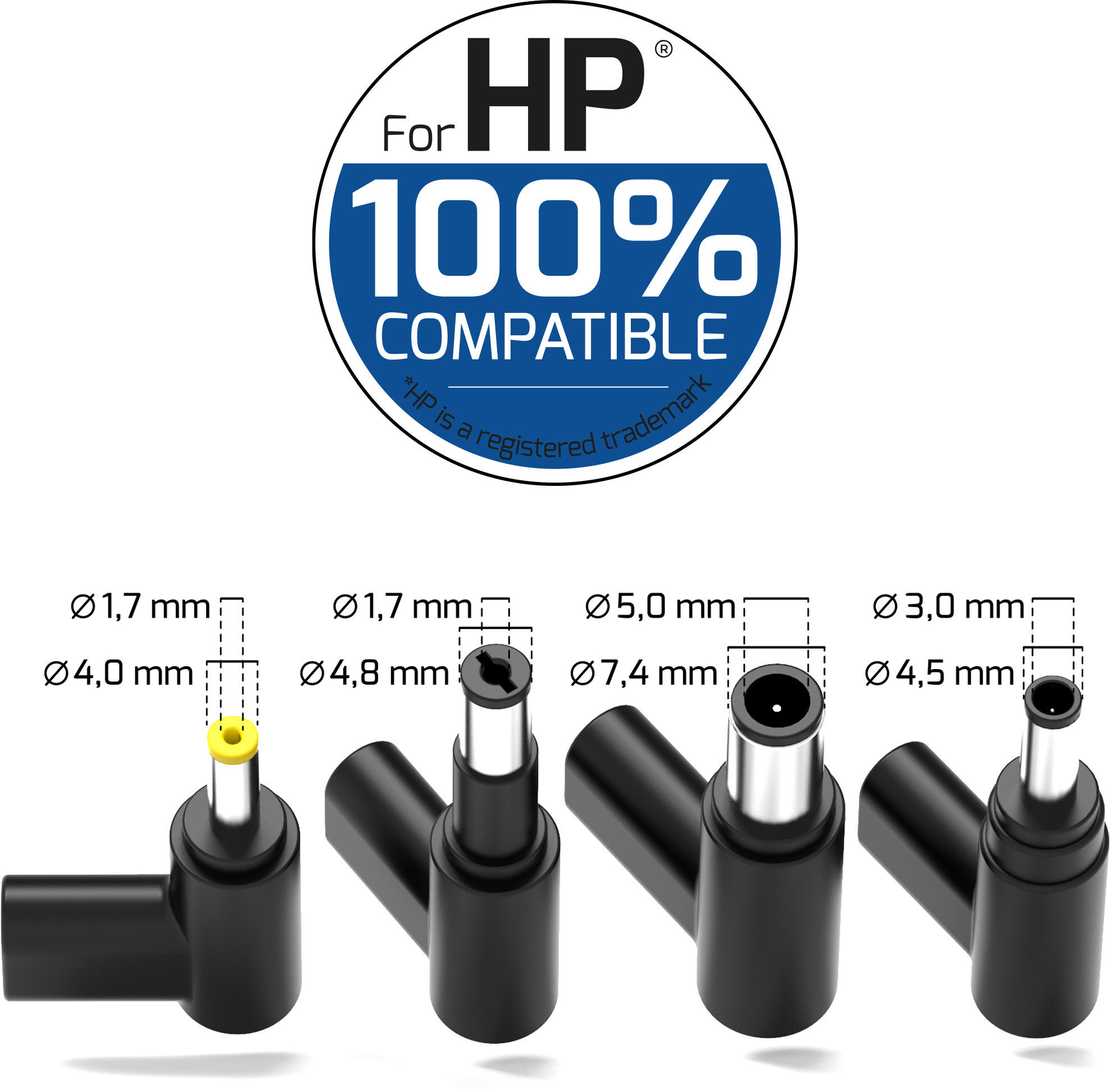 • 4 HP-spezifische Steckeraufsätze im Lieferumfang enthalten: Gewährleistet breite Kompatibilität über verschiedene HP® Laptop-Generationen hinweg