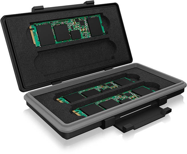 Die Schutzbox von ICY BOX ist aus hochwertigen und umweltfreundlichen Materialien gefertigt. Sie hat eine stabile und belastbare Hülle und massgeschneiderte und geformte Schaumstoffeinsätze im Innern, welche ausgewählte M.2 SSDs aufnehmen und sie vor Stössen, Staub und Spritzwasser schützen. Mittels des Silikon-Dichtringes kann die Schutzbox Staub und Feuchtigkeit wirksam fernhalten. Darüber hinaus ermöglicht der ergonomische Verriegelungsclip ein einfaches Öffnen und Schliessen. Ein zuverlässiges Utensil für die Aufbewahrung und den Transport Ihrer empfindlichen Speicherkarten.