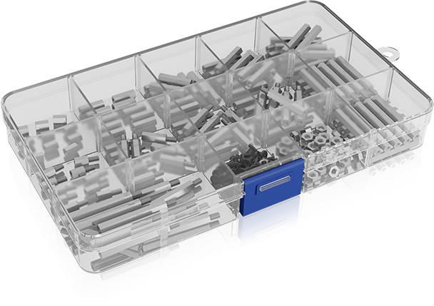 Pi®Abstandshalter- und Schrauben in Aufbewahrungsbox