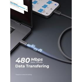 Brandneues Design der AUKEY Circlet-Serie. Hochwertige Kabel, die für den täglichen Gebrauch und Belastungen ausgelegt sind. Geflochtenes DTY-Material für verbesserte Haltbarkeit und lange Lebensdauer. Superschnelle Ladegeschwindigkeit von 240 W für Ihre Geräte. Datenübertragung mit bis zu 480 Mbit/s.