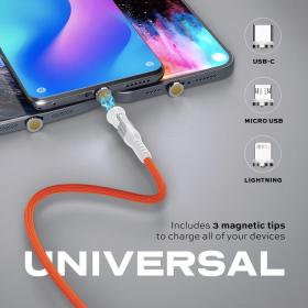 Neue Farben: 2025 Pro Upgrade: Wählen Sie zwischen Blaze Orange und Navy Blue – oder holen Sie sich beide für noch mehr Style. Finden Sie Ihre Kabel ganz einfach und organisieren Sie sie dank der genialen Farbcodierung. Für Laptops, Smartphones, Tablets und mehr: Schneller wieder Spaß haben. Das 360 Pro mit BlitzCharge lädt jedes Gerät, darunter Laptops, Smartphones, Tablets, Drohnen und mehr. Perfekt für Apple CarPlay und Android Auto: Streamen Sie Musik, hören Sie Podcasts und nutzen Sie Ihr GPS mit ultraschneller Datenübertragung von 480 MBit/s. Universalkabel: Enthält Lightning-, USB-C- und Micro-USB-Stecker zum Laden aller Geräte sowie einen USB-C- und USB-A-Adapter für jedes Netzteil. Nie wieder versehentlich die Verbindung trennen: Verbesserte Magnetstecker haben die doppelte Magnetkraft und bleiben beim Arbeiten oder Spielen mit Ihrem Gerät verbunden. Es wird nie wieder versehentlich die Verbindung trennen oder Sie morgens ohne Ladung dastehen lassen! Schützen Sie Ihre Geräte: Die magnetischen Spitzen sind um 360 Grad drehbar, sodass sie nicht im Weg sind, und schützen den Stromanschluss Ihres Geräts vor Schäden durch Staub, versehentliches Ziehen, Reißen, Überspannungen und Stolpern. WARNUNG: Dieses Produkt kann Sie Chemikalien wie Bisphenol A (BPA) aussetzen, das im US-Bundesstaat Kalifornien als krebserregend und/oder als Ursache für Geburtsfehler oder andere reproduktionsschädliche Substanzen gilt. Weitere Informationen finden Sie unter www.P65Warnings.ca.gov. Nicht für die Verwendung mit VR-Headsets empfohlen.