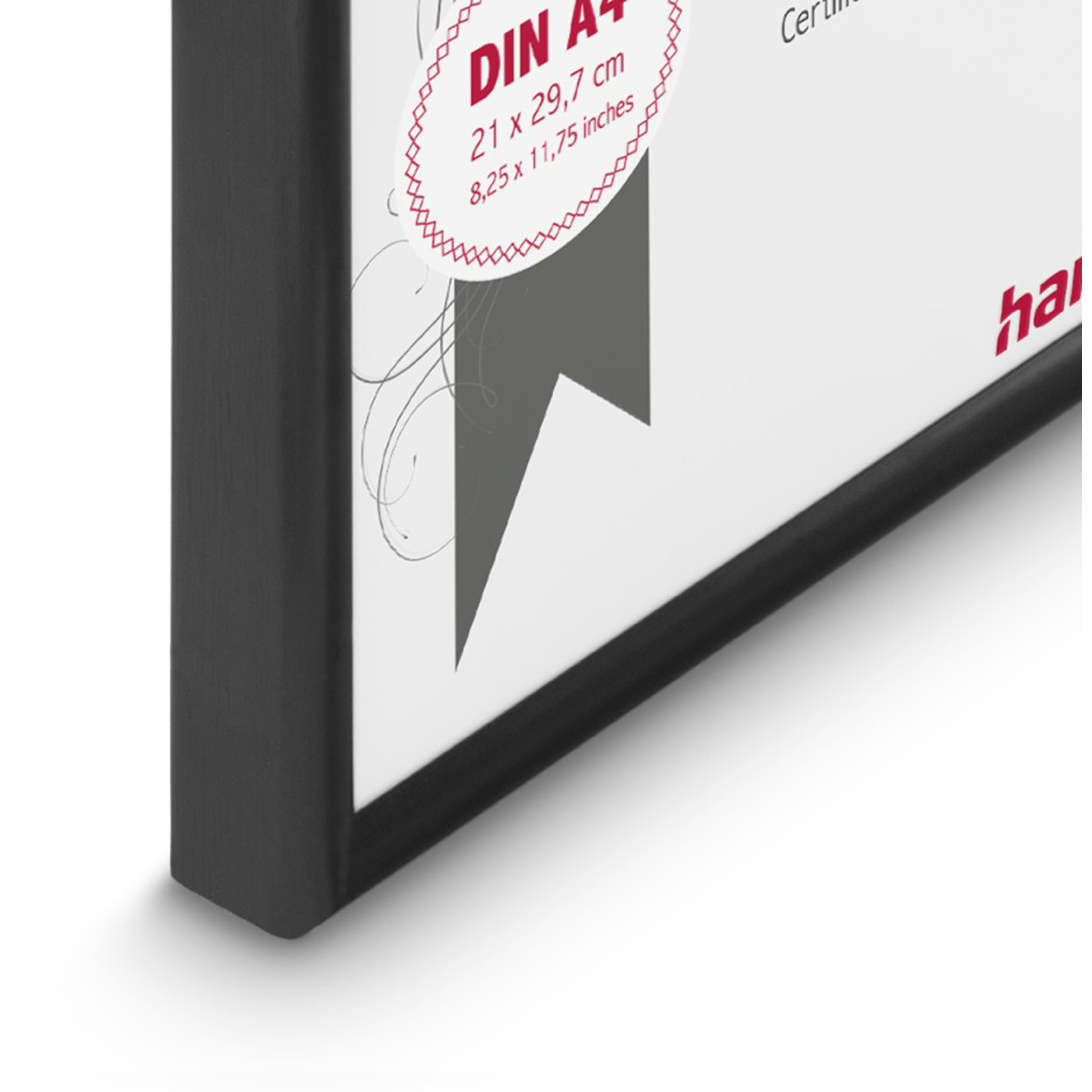 Der Hama Bilderrahmen Detroit ist ein eleganter Einzelrahmen, der sich durch sein modernes Design und hochwertige Materialien auszeichnet. Der Rahmen besteht aus matt eloxiertem und gebürstetem Aluminium, das nicht nur ansprechend aussieht, sondern auch langlebig ist. Mit einem Bildformat von 21 x 29.7 cm bietet er Platz für Ihre Lieblingsfotos oder Kunstwerke. Der Rahmen ist mit rund geschliffenem, gewaschenem Qualitätsglas ausgestattet, das für eine klare Sicht sorgt und gleichzeitig Ihre Bilder schützt. Die exakte Präzisionsgehrung gewährleistet eine perfekte Passform und ein ansprechendes Gesamtbild. Der mitgelieferte Einleger kann als Passepartout verwendet werden, was zusätzliche Gestaltungsmöglichkeiten eröffnet.