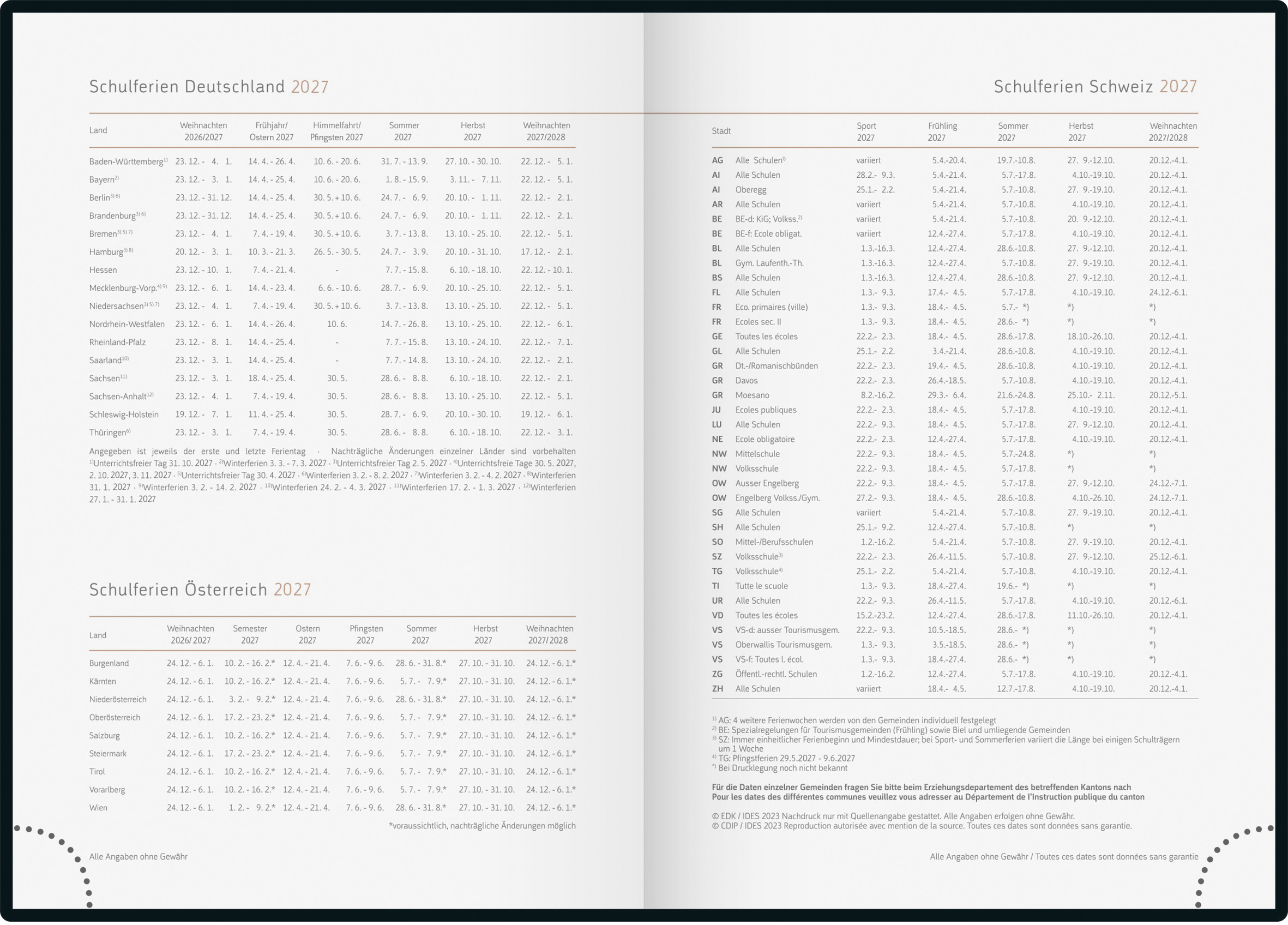 • Ferientermine Deutschland, Österreich und Schweiz
