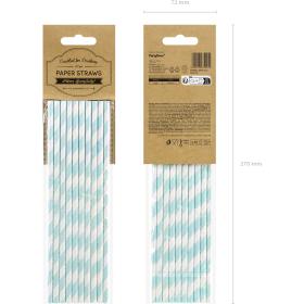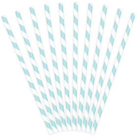 Papierstrohhalme in Hellblau mit weißen Diagonalstreifen, Länge ca. 19,5 cm.(1 VPE / 10 Stk.)