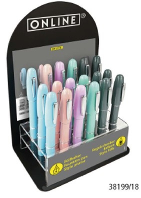 ONLINE lässt die „Crazy 50er“ wieder lebendig werden. Im Display enthalten sind je 2 Stück Kugelschreiber in Rose, Turquoise, Lavender und Blue, sowie 4 Stück in Anthracite. Vom Füllhalter je 1 Stück Rose, Turquoise, Lavender und Blue, sowie 2 Stück in Anthracite.