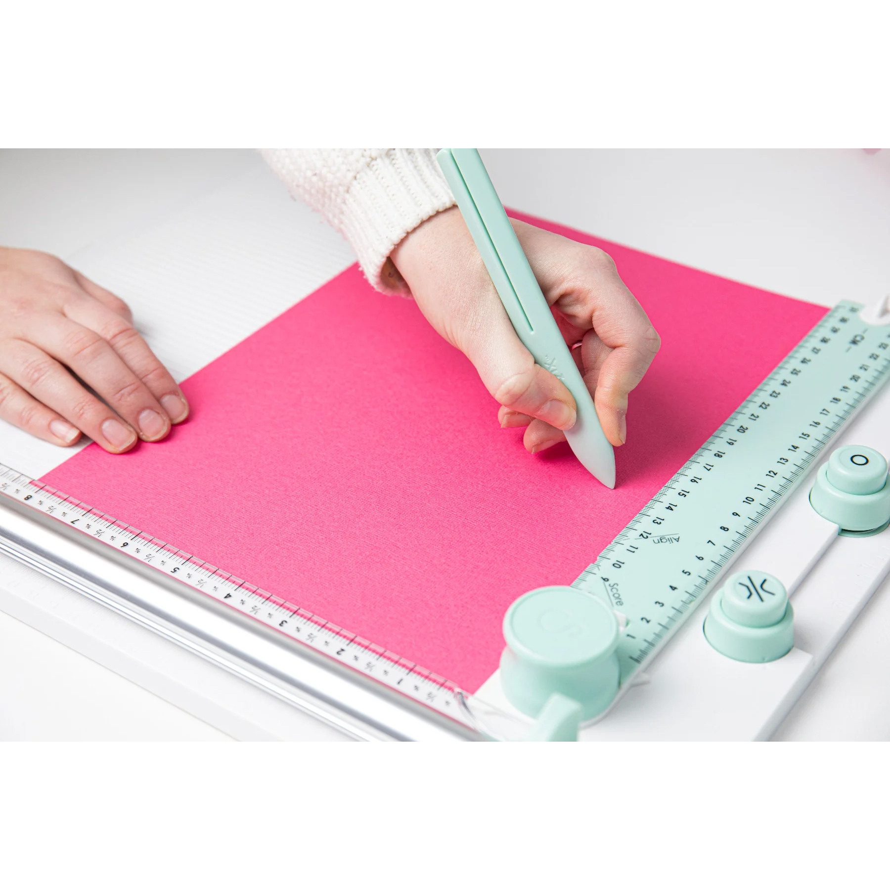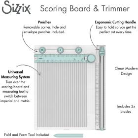 Sizzix™ Bastelwerkzeug – Falzbrett & Schneidemaschine „Wo Präzision auf Kreativität trifft! Ob Sie nun eine personalisierte Karte und den passenden Umschlag, die perfekt passende Schachtel für ein Geschenk, das sich unmöglich einpacken lässt, oder Dekorationsartikel wie Banner, Schleifen und Rosetten gestalten möchten – mit dem Falzbrett & Schneidegerät ist jetzt alles möglich. Dieses aufregende neue Werkzeug von Sizzix gibt Ihnen die Freiheit, Ihre Kreationen ganz nach Ihren Bedürfnissen zu gestalten und die Personalisierung auf ein professionelles Niveau zu heben! Mit der Möglichkeit, bis zu 12„ x 12“ zu schneiden und zu falzen, können Sie jetzt ganz einfach und präzise wirklich maßgeschneiderte Kreationen erstellen. Scannen Sie den QR-Code, um auf unseren Generator für Schachtel- und Umschlaggrößen zuzugreifen, der Ihnen zahlreiche Inspirationen und hilfreiche Anleitungen bietet, um Ihre kreative Reise weiter zu bereichern. Dieses Must-have für jedes Bastelzimmer mit seinem stilvollen und eleganten Design wird zu einem unverzichtbaren Begleiter, den Sie immer wieder verwenden werden.