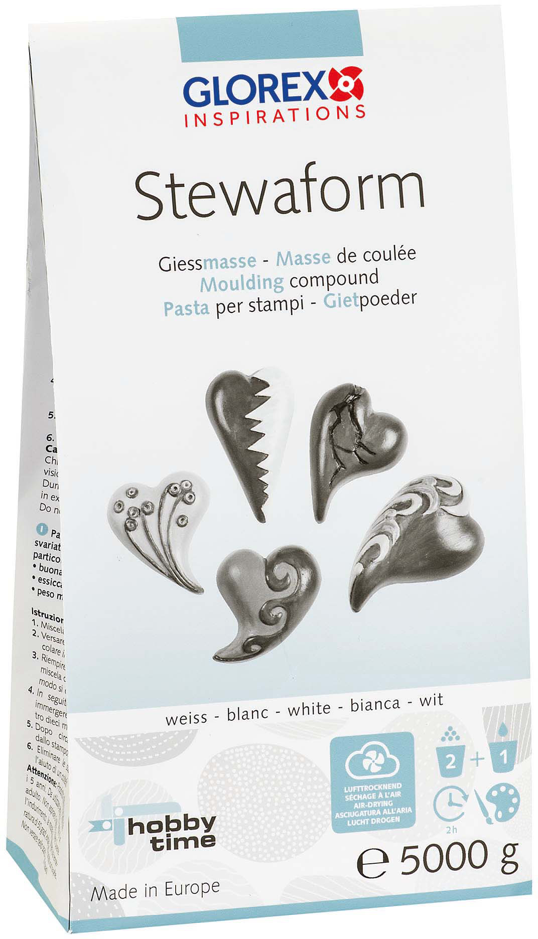 Universell verwendbare, weisse, preiswerte Giessmasse. Mischverhältnis Giessmasse : Wasser = 2 : 1. Durch den höheren Wasseranteil weisen die getrockneten Gegenständen ein niedriges Gewicht auf. Ausgehärtete Gegenstände weisen eine glatte Oberfläche auf und lassen sich nach einer Trockenzeit von ca. 2 Stunden bemalen. Eine vorgängige Behandlung mit Malgrundierung ist empfehlenswert.