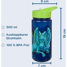 • Perfekt für unterwegs: 500 ml Fassungsvermögen bieten ausreichend Flüssigkeit für den ganzen Tag – ideal für Schule, Sport und Ausflüge.