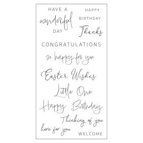 Kein Bastelset ist komplett ohne eine Auswahl an Sprüchen für jeden Anlass. Dieses neue Clear-Stempel-Set von Lisa Jones enthält eine Vielzahl von Alltags-Sprüchen, die Sie immer wieder verwenden können und die sich perfekt eignen, um das ganze Jahr über Liebe und positive Stimmung zu verbreiten.