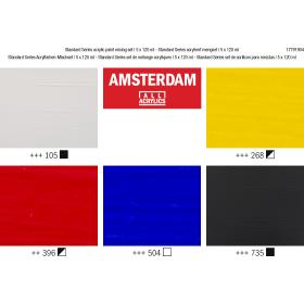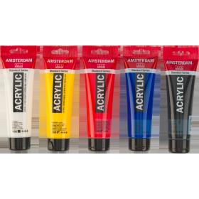 Das Set bietet dir 5 tolle Grundfarben in grossen Tuben: Titanweiss, Oxidschwarz und drei warme Mischfarben – Azogelb hell, Naphtholrot mittel und Ultramarin. Dies sind die perfekten Mischfarben für deine erste Farbpalette. Mische diese Farben, um eine endlose Variation verschiedener Schattierungen zu erhalten. Inhalt: 5 x 120 ml (105 Titanweiss – 268 Azogelb hell – 396 Naphtholrot mittel – 504 Ultramarin – 735 Oxidschwarz). Amsterdam Standard Series Unsere Standardserie bietet dir die umfangreichste Palette an bemerkenswert lebendigen Acrylfarben. Diese vielseitige Farbe ist leicht zu verarbeiten und lässt sich einfach auftragen. Du kannst die Farbe entweder direkt aus der Tube verwenden oder mit Wasser oder einem unserer Acrylmalmittel verdünnen. Farbe von mittlerer Viskosität für sichtbare Pinselstriche, Struktur und gleichmässige Deckkraft mit seidenmattem Finish. Hergestellt mit hochwertigen, lichtechten Pigmenten Formuliert mit 100 % Acrylharzbindemittel, was zu einem aussergewöhnlich haltbaren und flexiblen Farbfilm mit gleichmässigem Glanz führt Die geruchsneutrale, wasserbasierte Formel wird nach dem Trocknen wasserfest und dauerhaft Umfangreiche Palette aus 102 Farben mit einer grossen Vielfalt im Bereich Deckkraft, darunter 23 Spezialfarben (Metallic-, Perl- und Reflexfarben) Haftet auf praktisch allen leicht porösen Oberflächen, einschliesslich Leinwand, Papier, Pappe, Holz, Stein und Beton Mit Stolz in den Niederlanden hergestellt Gemeinsam halten wir unseren Planeten sauber Wir möchten die Welt mit unseren Produkten aufregend und farbenfroh machen, aber wir wollen auch unseren Planeten schützen. Darum arbeiten wir unermüdlich daran, unseren Kunststoffverbrauch zu reduzieren und suchen nachhaltigere Alternativen. Diese 100 % recycelbare Verpackung ist aus recycelter Pappe hergestellt, die lokal beschafft und produziert wurde, um den CO2-Fussabdruck noch weiter zu reduzieren.