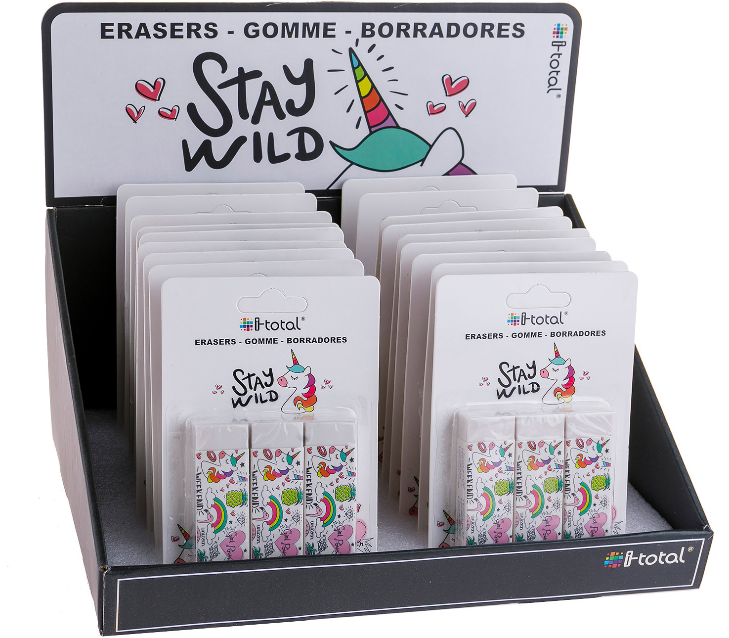 Radierer in verschiedensten lustigen Farben und Formen.