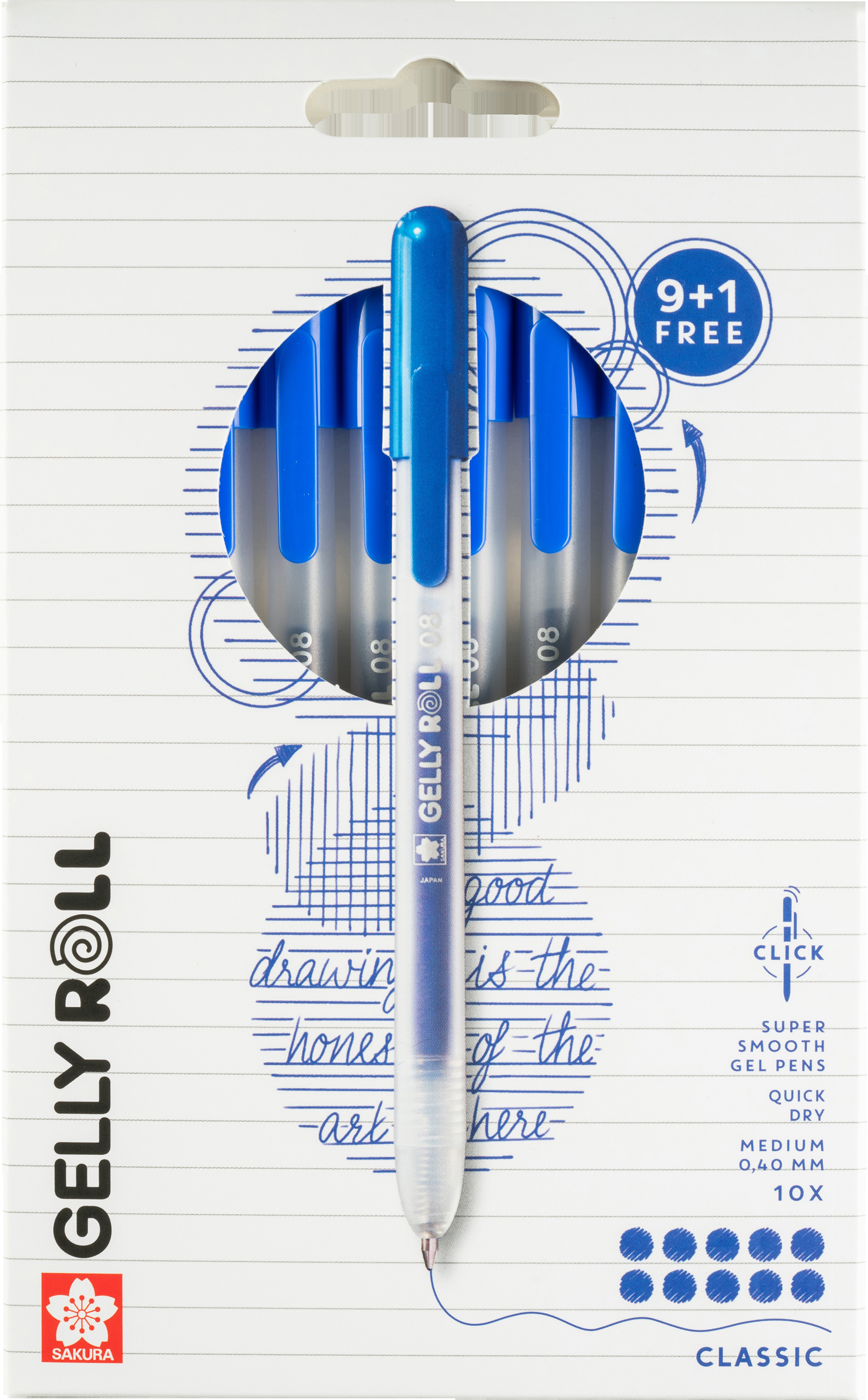 Erleben Sie mit dem Gelly Roll Retractable Gel Pen ein flüssiges, lebendiges Schreibgefühl. Dieser Gelstift ist perfekt für alle, die gerne schreiben, und bietet einen satten, gleichmässigen Tintenfluss für ein makelloses Schreiberlebnis. Dank seines einziehbaren Designs können Sie sofort mit dem Schreiben beginnen.<br>Der Gelly Roll Classic verfügt über eine Gel-Tintenformel, die schnell trocknet und eine Reihe atemberaubender, lebendiger Farben für optimale Lesbarkeit bietet. Ganz gleich, ob Sie Notizen machen, Tagebuch führen oder kritzeln, Sie können sich darauf verlassen, dass die Präzisionsspitze des Stifts scharfe, saubere Linien erzeugt. Dieses Set besteht aus 9 + 1 gratis Gelstiften mit blauer Tinte.
