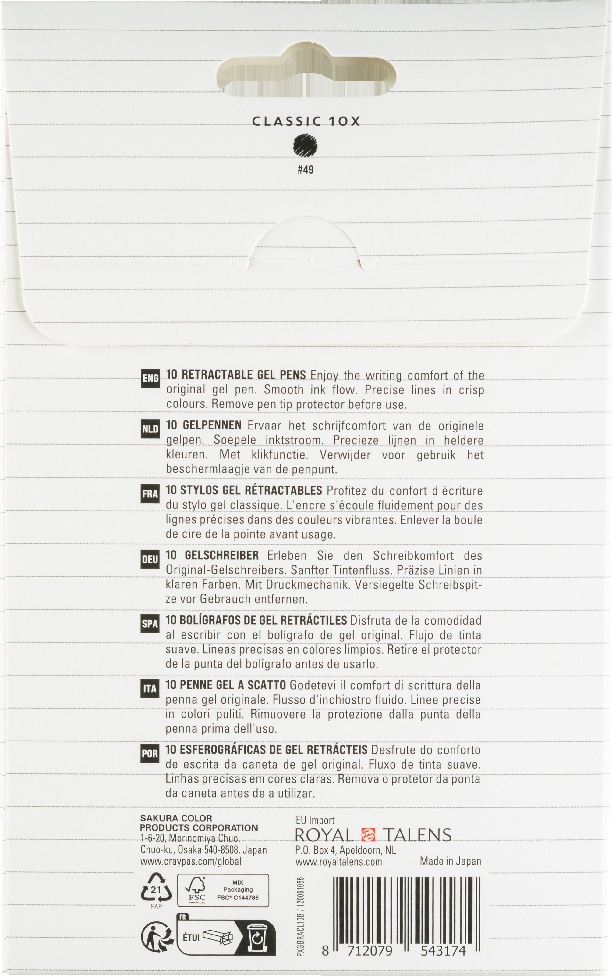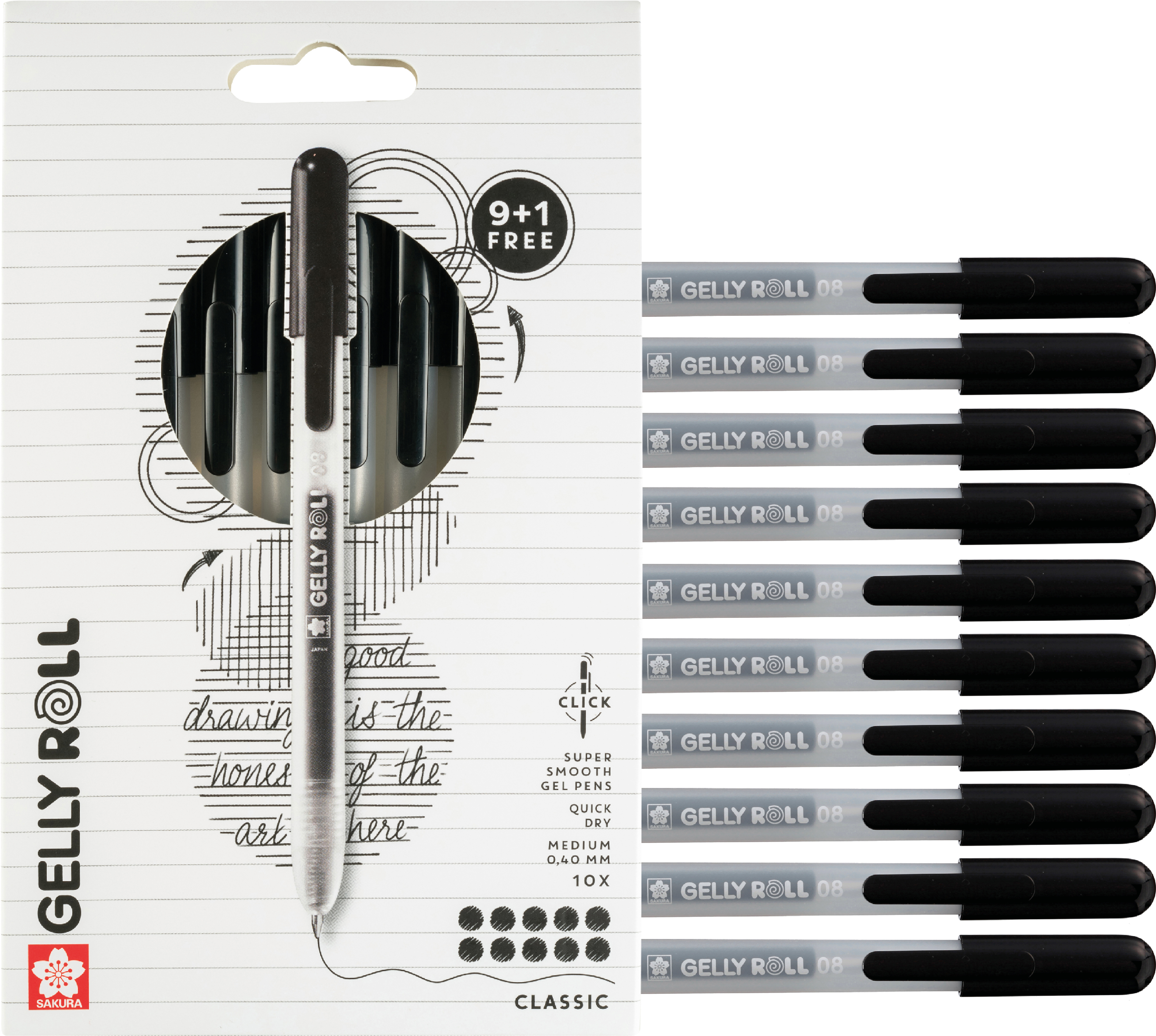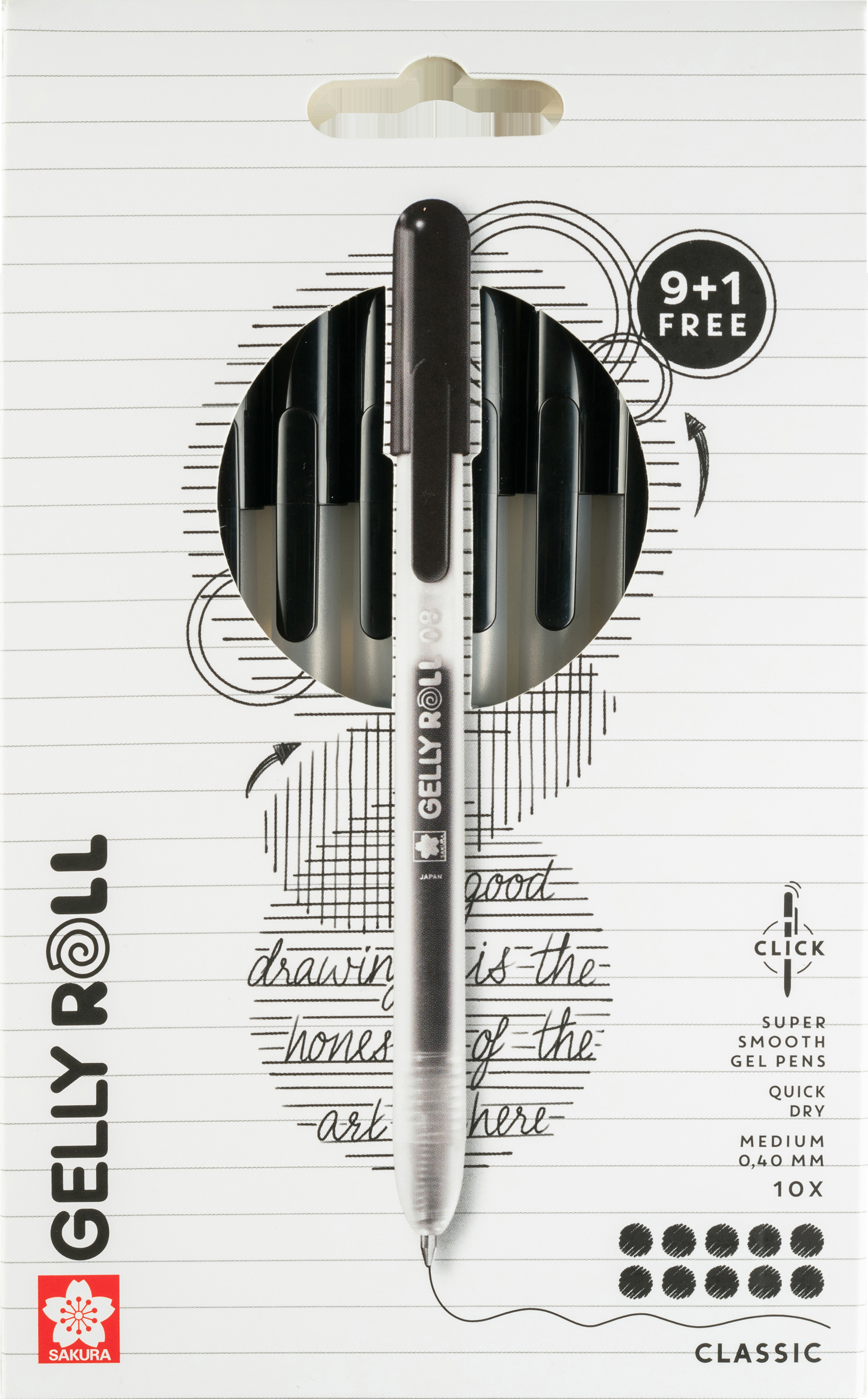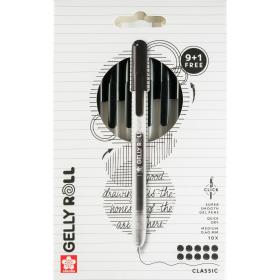 Erleben Sie mit dem Gelly Roll Retractable Gel Pen ein flüssiges, lebendiges Schreibgefühl. Dieser Gelstift ist perfekt für alle, die gerne schreiben, und bietet einen satten, gleichmässigen Tintenfluss für ein makelloses Schreiberlebnis. Dank seines einziehbaren Designs können Sie sofort mit dem Schreiben beginnen.<br>Der Gelly Roll Classic verfügt über eine Gel-Tintenformel, die schnell trocknet und eine Reihe atemberaubender, lebendiger Farben für optimale Lesbarkeit bietet. Ganz gleich, ob Sie Notizen machen, Tagebuch führen oder kritzeln, Sie können sich darauf verlassen, dass die Präzisionsspitze des Stifts scharfe, saubere Linien erzeugt. Dieses Set besteht aus 9 + 1 gratis Gelstiften mit schwarzer Tinte.