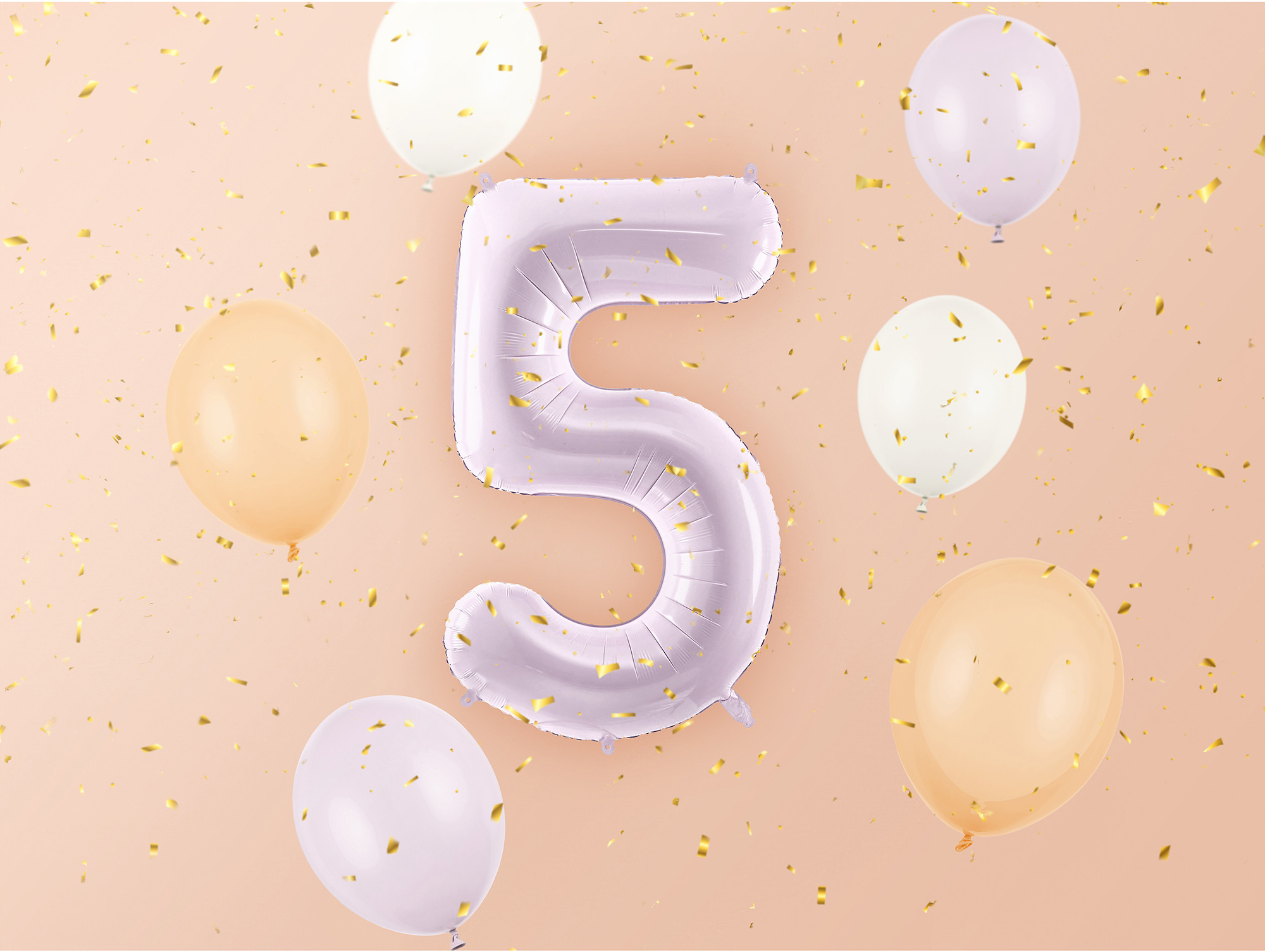 Der pastellfarbene Folienballon mit der Ziffer 5 ergänzt die Geburtstagsszenerie auf stilvolle Weise. Vor dem Aufblasen misst er 86 cm, nach dem Aufblasen 72 cm. Er kann sowohl mit Luft als auch mit Helium befüllt werden und wird im Set inklusive Strohhalm geliefert, sodass die Vorbereitung besonders einfach ist. Der Ballon ist selbstversiegelnd und mit einem Haken ausgestattet, der eine mühelose Befestigung ermöglicht. Die sanften Pastellfarben machen ihn zu einem vielseitigen Element, das sich perfekt mit weiteren Zahlenballons oder thematischer Dekoration kombinieren lässt – ideal für runde Geburtstage, Jubiläen oder besondere Meilensteine.