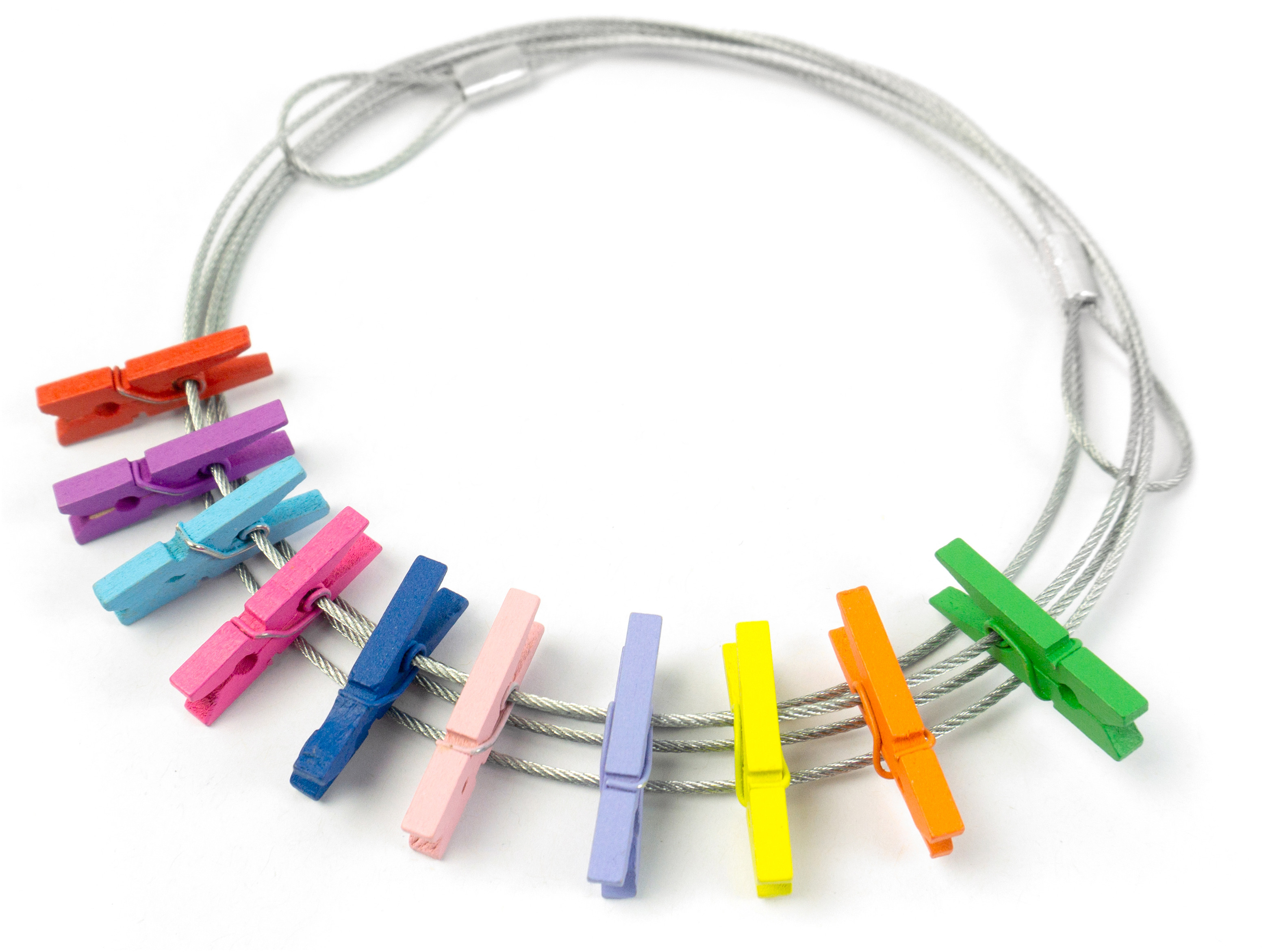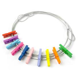 Fotoleinen zum quer aufhängen mit 2 Ösen und 10 Holz-Klammern.