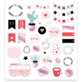 4 Stickerbögen, 15 x 16,5 cm, in versch. Größen, Farben und Motiven, teilweise mit Folie oder Glitter veredelt, selbstklebend, 130 Stück, ca. 1 - 7 cm
