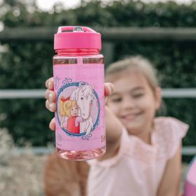 Die Bibi & Tina Trinkflasche ist der perfekte Begleiter für unterwegs. Über einen integrierten Strohhalm stillt die Flasche Durst schnell ohne zu bekleckern. Durch den Schraubverschluss ist die Flasche schnell befüllt und hält dicht. Die Trinkflasche mit Bibi & Tina Motiv ist perfekt für alle Fans der Serie. Da wird das Trinken in der Pause sicherlich nicht vergessen!