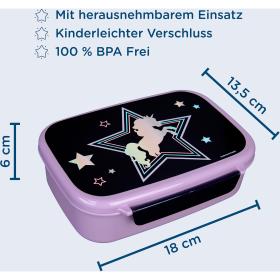 Die Brotzeitdose von Scooli mit den vielen kindergerechten Motiven ist der richtige Behälter für das gesunde Pausenbrot! Über einen herausnehmbaren Einsatz lassen sich alle Leckereien auch voneinander trennen. Mit zwei Clips ist die Dose schnell geöffnet und geschlossen.