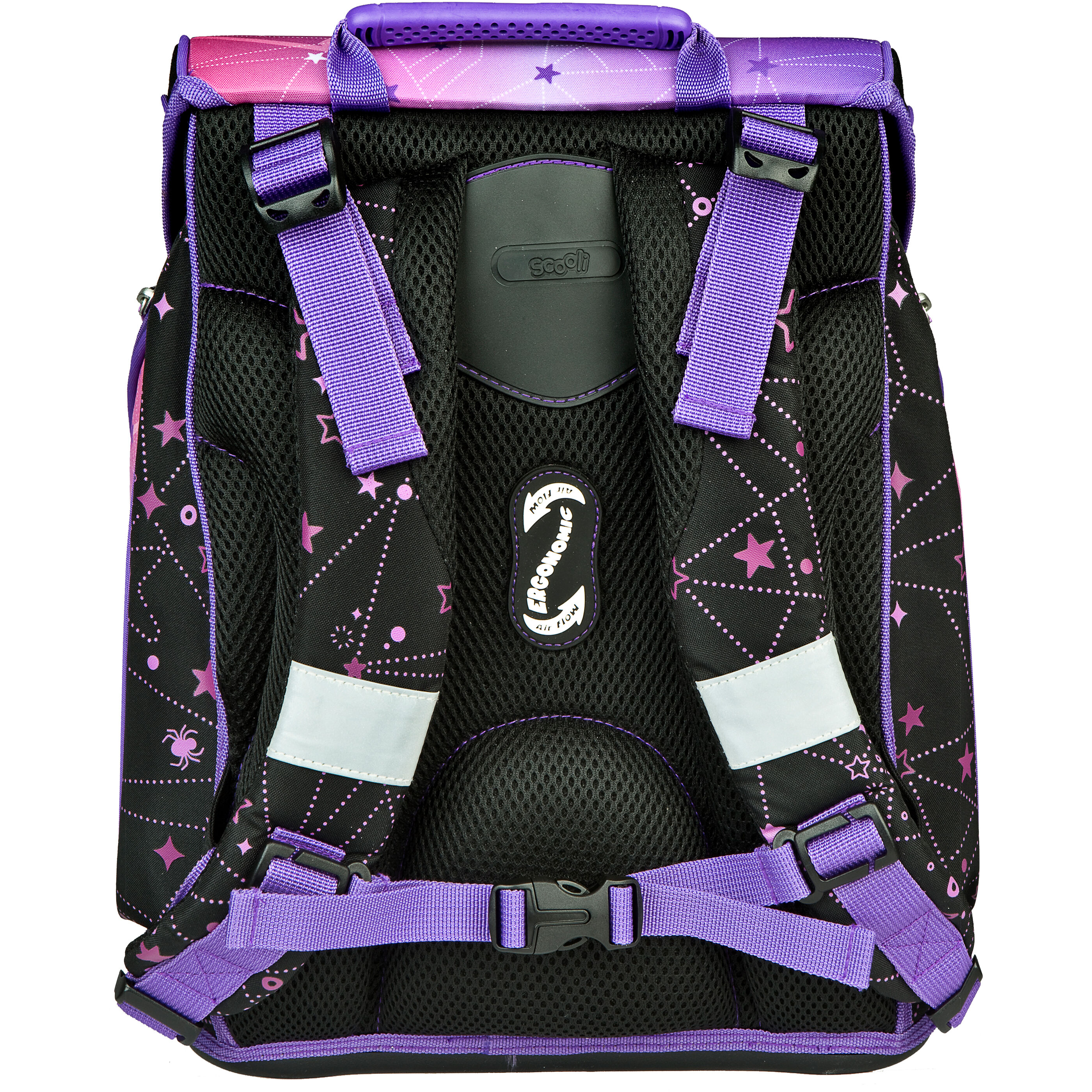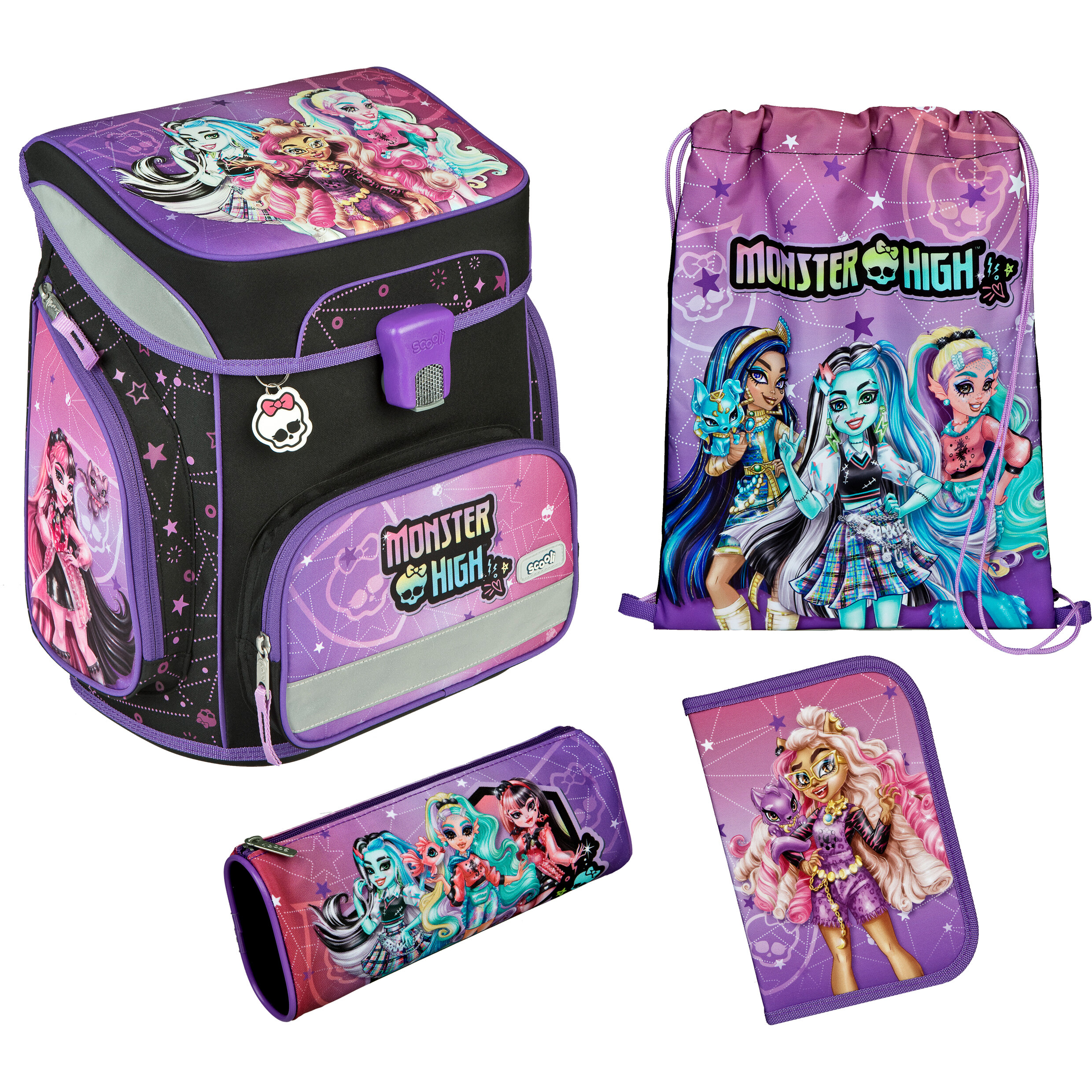 Set bestehend aus: Schulranzen (Gewicht ca. 1.000 gr., Volumen ca. 18 Liter, abnehmbarer Brustgurt, gepolsterter ergonomischer Rücken, Brustgurt, Reflektorflächen, Magnetschloss, uvm.), Schlüsselanhänger, Schlamperetui, Schuhbeutel, Schüleretui mit Eberhard Faber Füllung Polyester, 1 Stück im Polybeutel.