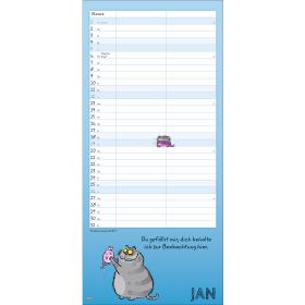Das übersichtliche Kalendarium mit 2 Spalten zum Eintragen bietet viel Platz für Termine und Notizen.