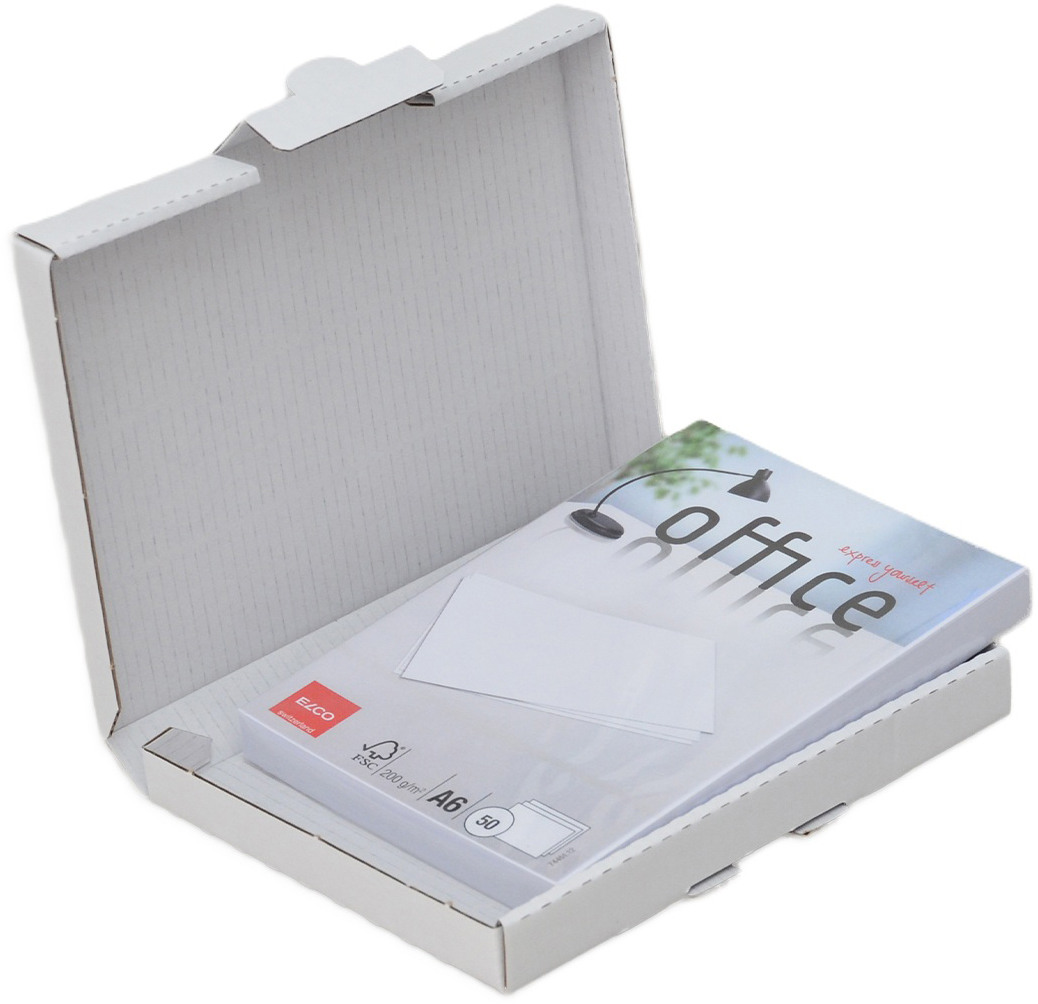 Die einteilige Klappschachtel lässt sich einfach schliessen und öffnen. Durch die schmale Dicke, lässt sie sich zum Briefpost-Tarif versenden und spart damit Portokosten ein.