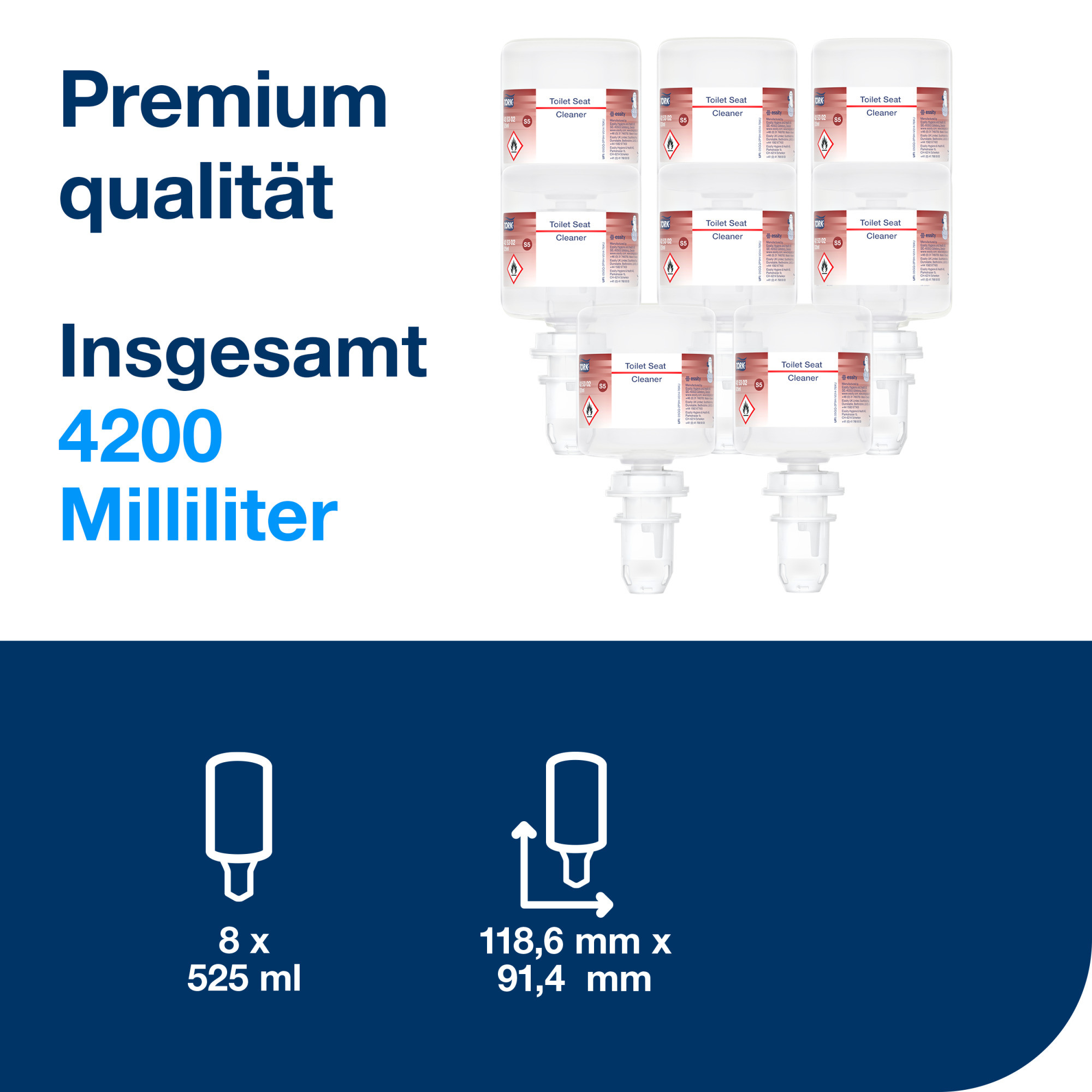 Der Tork Toilettensitzreiniger gibt den Besucher*innen ein zusätzliches Gefühl von Sicherheit. Sorgen Sie mit einer Dosis Toilettensitzreiniger auf einem Stück Toilettenpapier für einen sauberen Toilettensitz. Geeignet für Tork Mini Spender für Seifen und Händedesinfektionsmittel, nachgewiesen „Easy to use“.