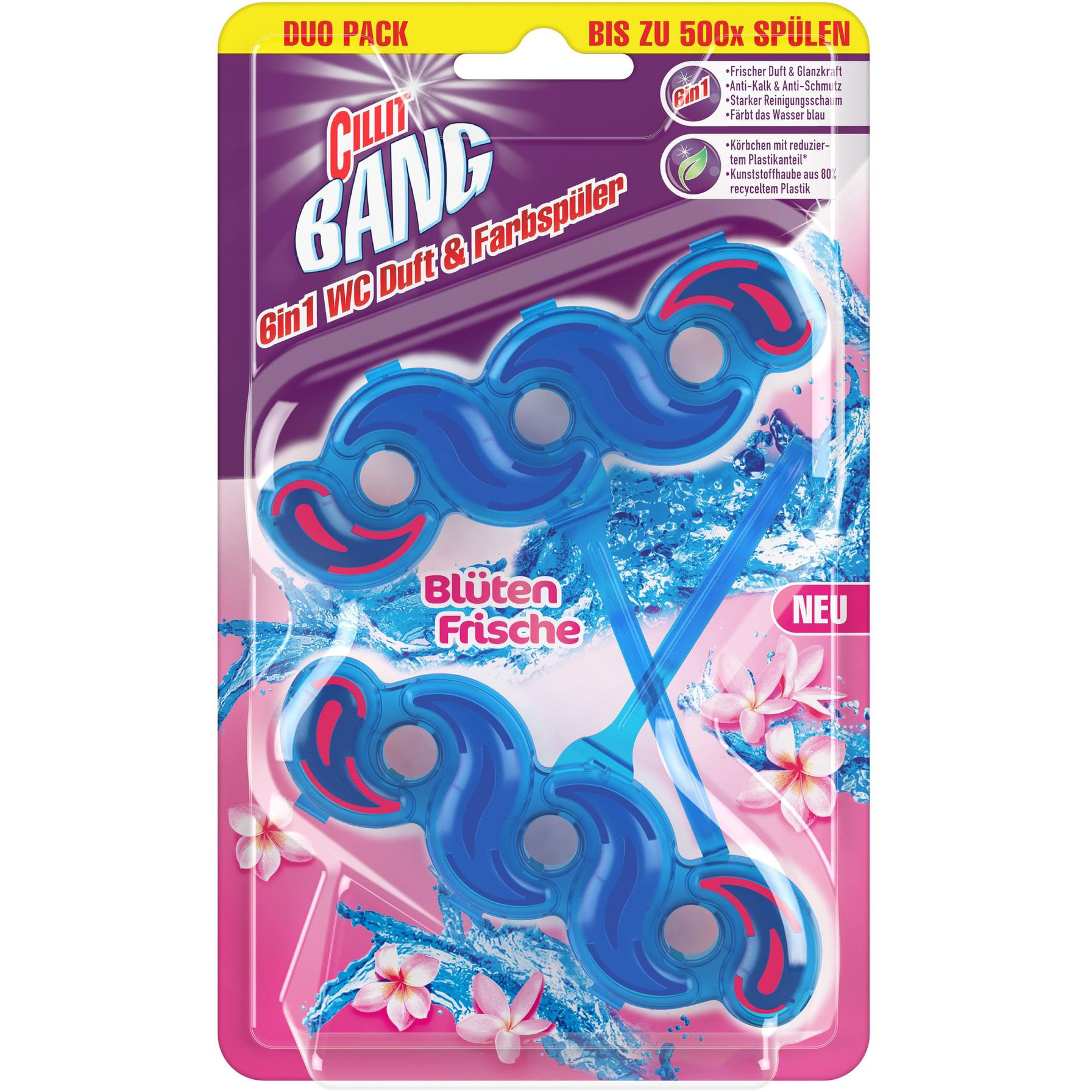 WC-Einhänger für eine hygienisch saubere Toilette. Färbt das Toilettenwasser erfrischend blau. Setzt einen angenehmen Blüten-Duft frei. Der kraftvolle Reinigungsschaum lässt das WC wieder glänzen. Stark gegen Kalkablagerungen.