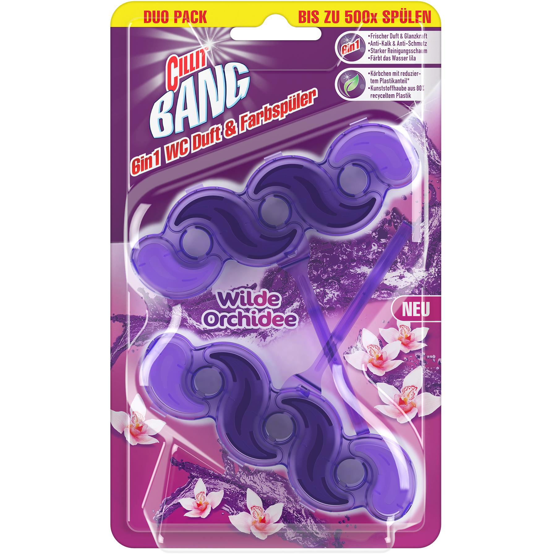 WC-Einhänger für eine hygienisch saubere Toilette. Färbt das Toilettenwasser lila. Setzt einen angenehmen floralen Duft frei. Der kraftvolle Reinigungsschaum lässt das WC wieder glänzen. Stark gegen Kalkablagerungen.