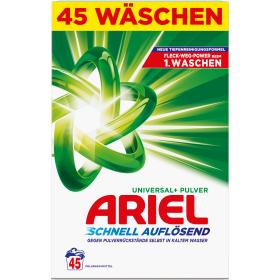 • SCHNELLE, RÜCKSTANDSFREIE AUFLÖSUNG, SELBST BEI NIEDRIGEN TEMPERATUREN: Das Ariel Waschpulver löst sich bei Kontakt mit Wasser schnell auf und hinterlässt keinerlei Rückstände, selbst bei niedrigen Temperaturen