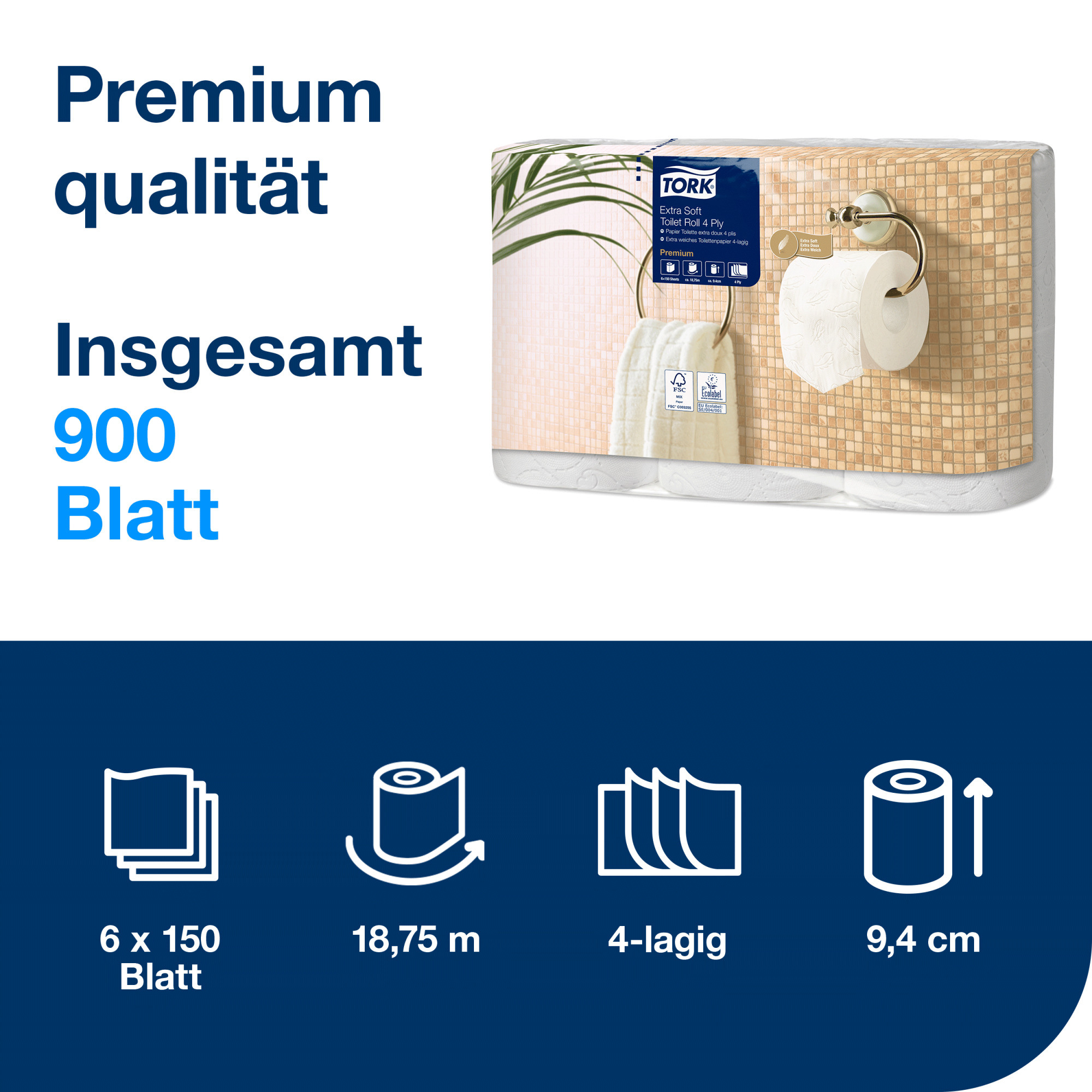 extra weiches Kleinrollen Toilettenpapier Premium T4