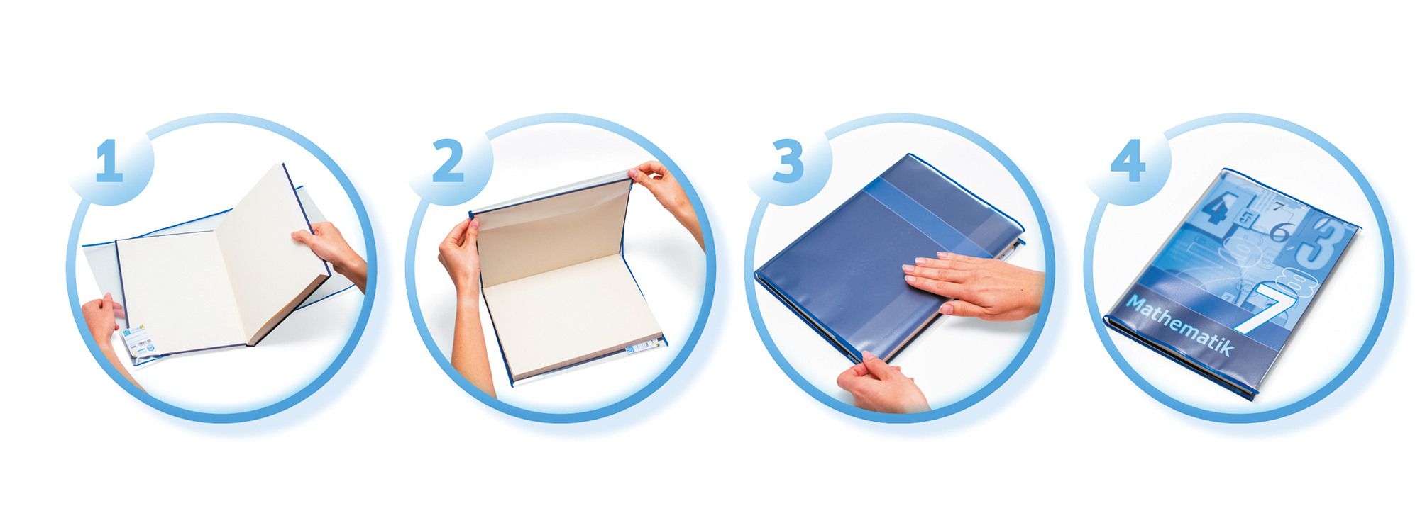 Rundum durchsichtige Fertigeinbände aus kräftiger Polypropylen-Folie mit stabilem, geschweissten Kantenschutz. Mit zweiter Lasche für perfekten Halt. Der perfekte Schutz für alle Bücher, verlängert die Lebensdauer. Mit Beschriftungsetikett.