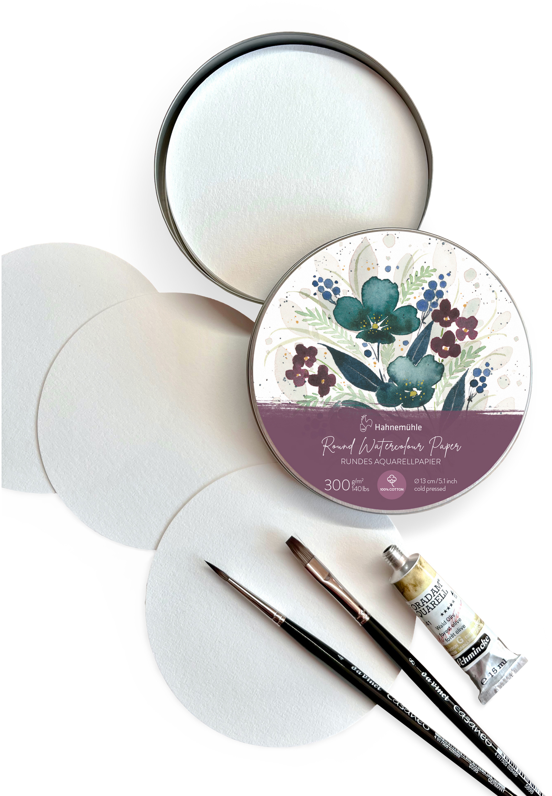 Das Runde Aquarellpapier Expression von Hahnemühle wird aus hochwertigen Materialien hergestellt und steht für eine Papierproduktion mit besonderer Qualität. Mit einem Flächengewicht von 300 g/m² eignet sich das Papier ideal für Aquarellmalerei, Gouache und andere Nassmaltechniken. Die matte, fein strukturierte Oberfläche sorgt für eine gleichmässige Farbaufnahme und brillante Ergebnisse. Die praktische Metallbox schützt das Papier und macht es besonders transportfreundlich.