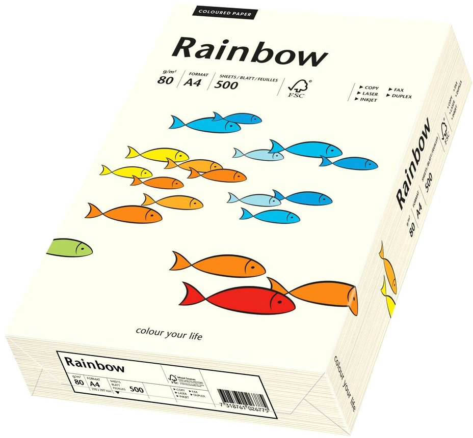Das Rainbow Papier ist ein hochwertiges, farbiges Büropapier für den täglichen Einsatz. Es ist für alle Kopierer, Laser, Fax, Inkjet und digitale Drucksysteme geeignet.