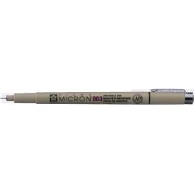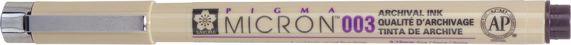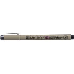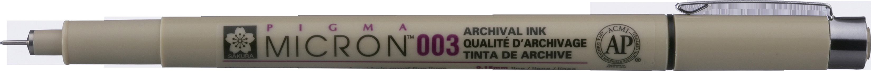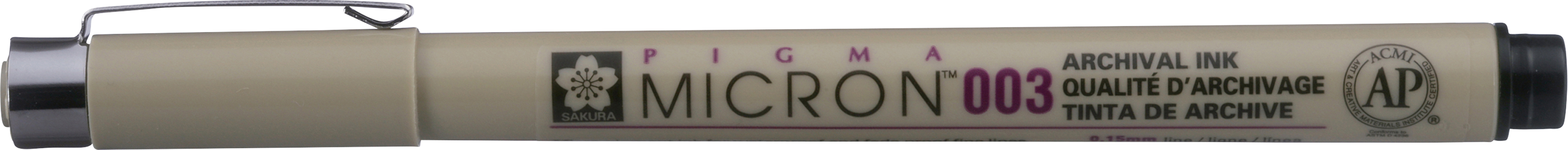 Die Pigma Micron Stifte sind wasserfeste und permanente Fineliner, die gerne von Designern, Wissenschaftlern, Archivaren, Architekten, Manga-Zeichnern, Cartoonisten, Illustratoren und Hobbykünstlern verwendet werden. Dank der feinen Spitze ist dieser Stift ideal für sowohl technische als auch künstlerische Zeichnungen. Die Fineliner haben eine verlängerte Spitze, die mit einer schützenden Metallhülse ausgestattet ist. Das sorgt für zusätzliche Kontrolle und höhere Belastbarkeit bei der Verwendung mit Zeichengeräten wie Linealen.<br>Der Pigma Micron ist der erste technische Einwegstift mit pigmentierter Archivtinte.  Verschmiert nicht, verwischt nicht und läuft auf den meisten Papieren nicht aus.<br> <br>Eigenschaften<br>Wird von technischen Fachleuten wie Anthropologen, Entomologen, Wissenschaftlern, Ingenieuren, Archivaren, Architekten und in Forschungslabors verwendet.<br>Verschmiert nicht, verwischt nicht und läuft auf den meisten Papieren nicht aus.<br>Permanente und archivierbare Qualitätstinte.<br>Wasserfest und lichtecht.<br>Wasserbasierte Formulierung von Tinte auf Pigmentbasis, komplexer und stabiler als Tinte auf Farbstoffbasis.<br><br> <br>Technische Daten<br>Arbeitstemp.: 5˚C - 40˚C<br>Art der Tinte: Pigmenttinte auf Wasserbasis<br>Strichstärke: 0,15 mm<br>Grösse: 135 mm<br>