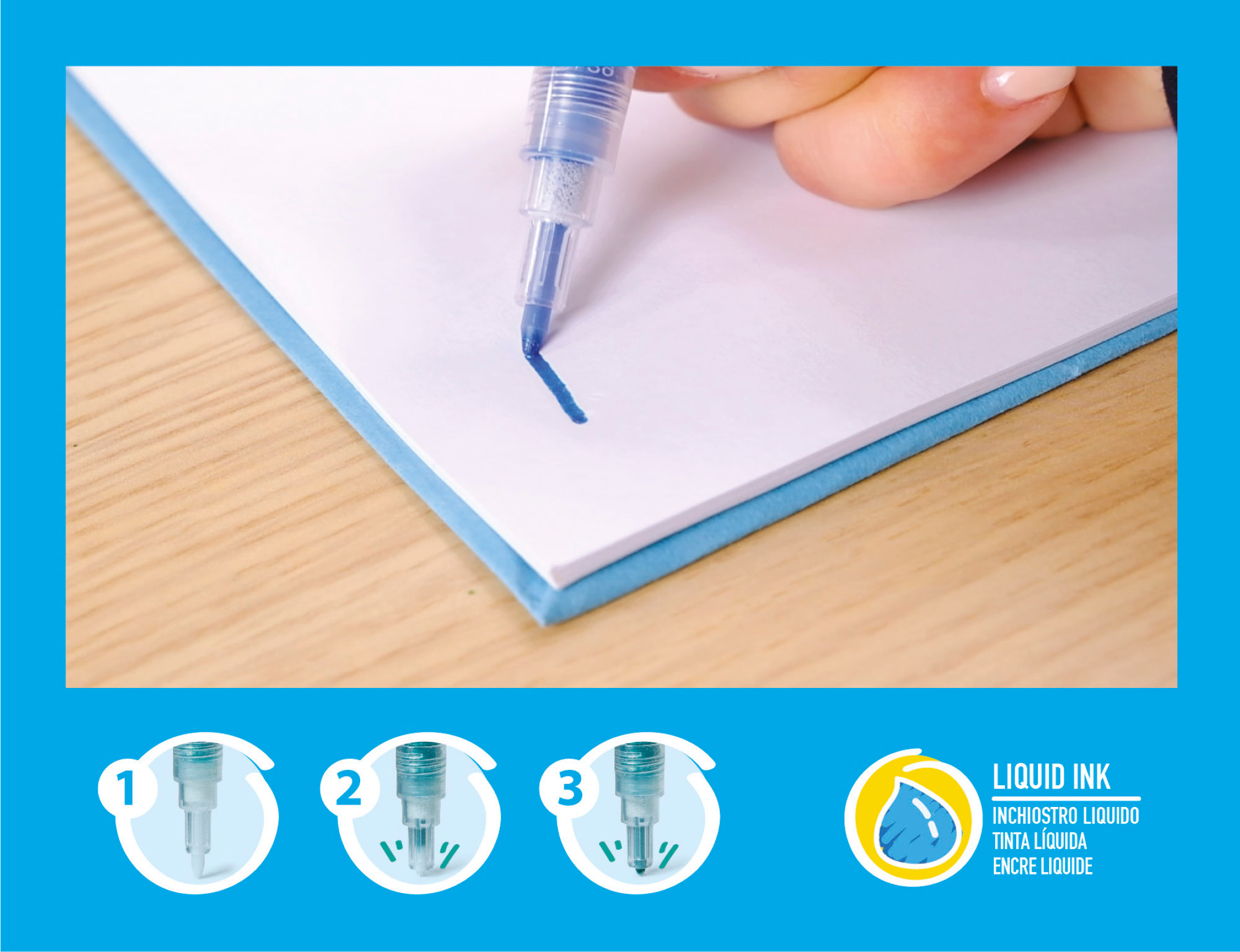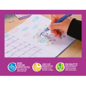 Glittermarker mit einer Strichbreite von 1mm. Flüssigtintenmarker auf Wasserbasis, trocknet schnell und ist lichtecht. Etui mit 6 Farben: Gold, Silber, Blau, Grün, Rot, Magenta.