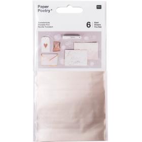 Die Paper Poetry Transferfolie ist ideal zum metallischen Verzieren in 3D-Optik und kinderleicht in der Anwendung: Malen oder Schreiben Sie mit dem Klebestift auf Papier, Pappe oder was auch immer Sie verzieren möchten, legen Sie die Transferfolie auf und reiben Sie mit leichtem Druck über die Klebestelle. Die Folie anschließen abziehen - so erhalten Sie tolle Effekte! Die Folie bleibt nur auf den klebenden Stellen haften.