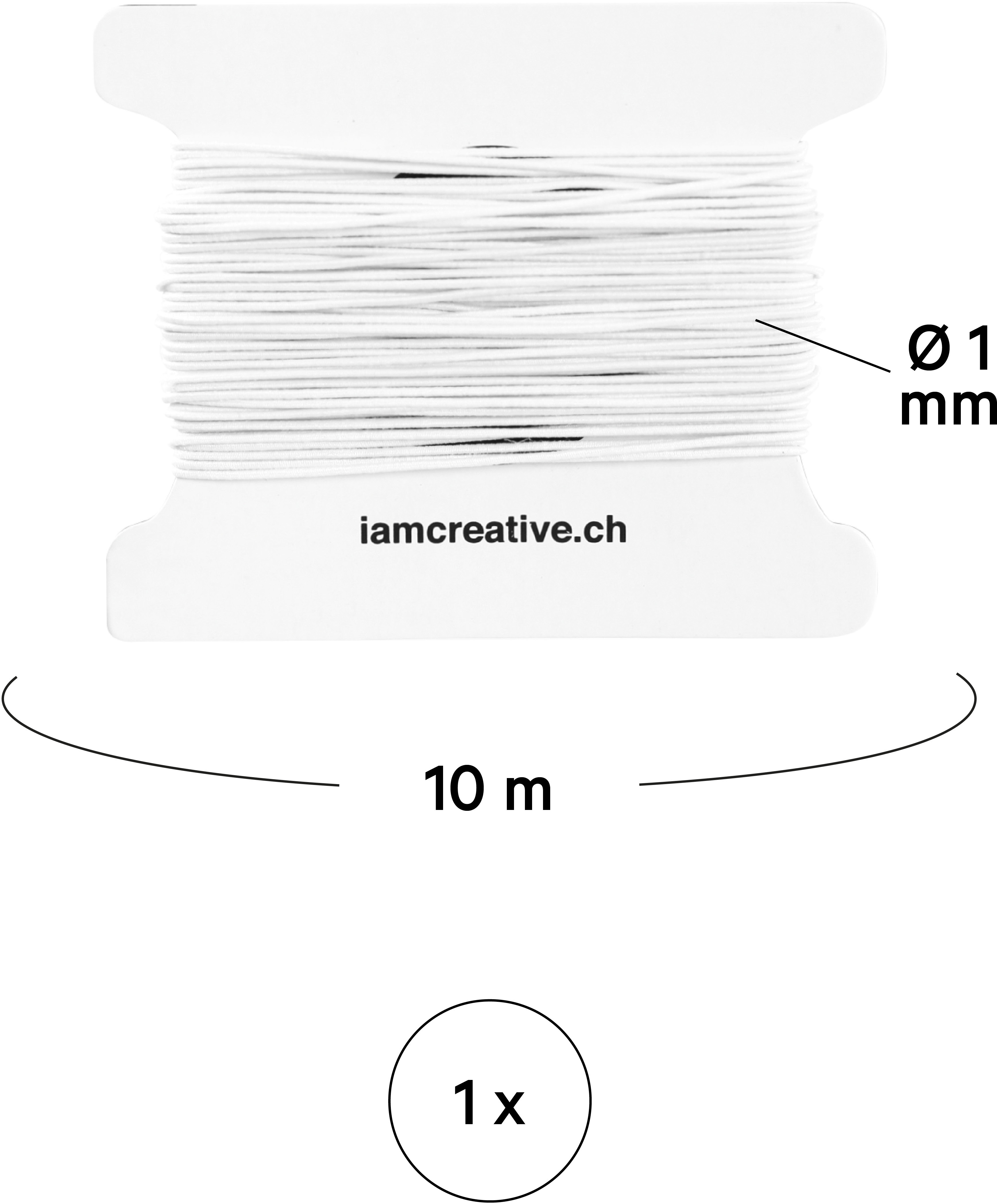 Das elastisches und super flexible Gummiband aus Kunststoff ist ein vielseitiges Material, das für verschiedene kreative Projekte verwendet werden kann und der Fantasie keine Grenzen setzt. Damit kann man zum Beispiel schöne Armbänder, Halsketten oder peppige Haarbänder gestalten, indem man es mit Perlen, Anhängern oder anderen Elementen kombiniert. Auch für andere Bastelarbeiten wie Blumenkränze, Schlüsselanhänger, Lesezeichen oder als Gummimotor für selbstgebastelte Spielzeugautos, Boote oder Flugzeuge eignet es sich ideal. Das weisse Gummiband aus Kunststoff ist einfach zu verarbeiten, da es sich dehnen und knoten lässt und nicht ausfranst. Mit dem passenden Zubehör aus unserem Sortiment gelingen die vielen tollen Bastelideen umso besser!