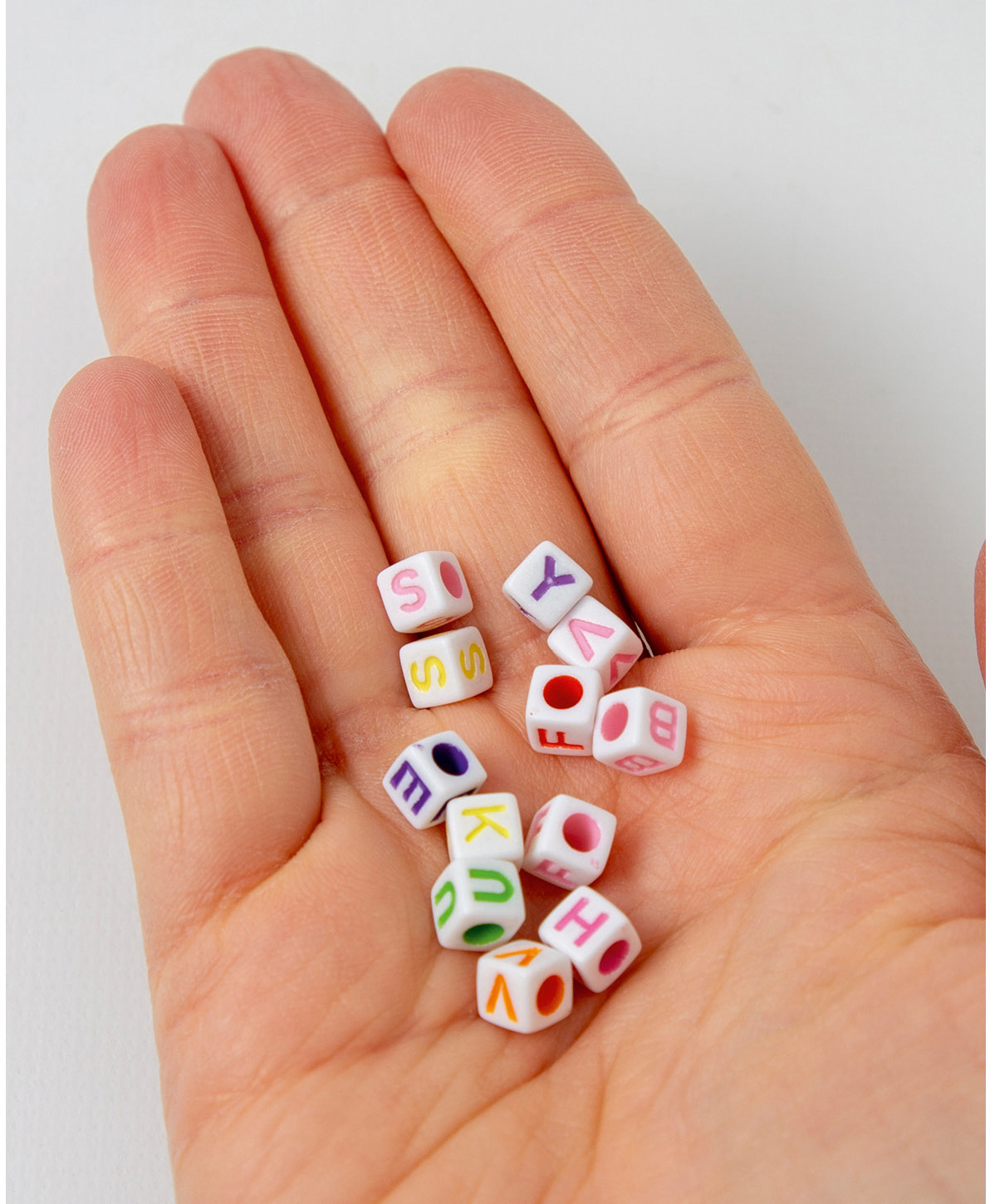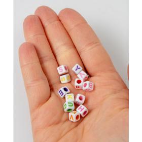 Schmuckperlen, Buchstaben, eckig, weiss/bunt, 6 mm, 50 gr.