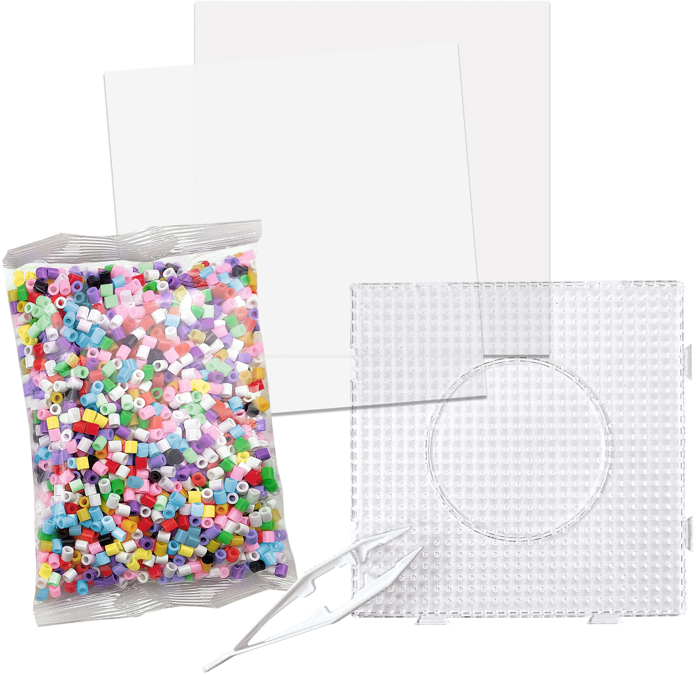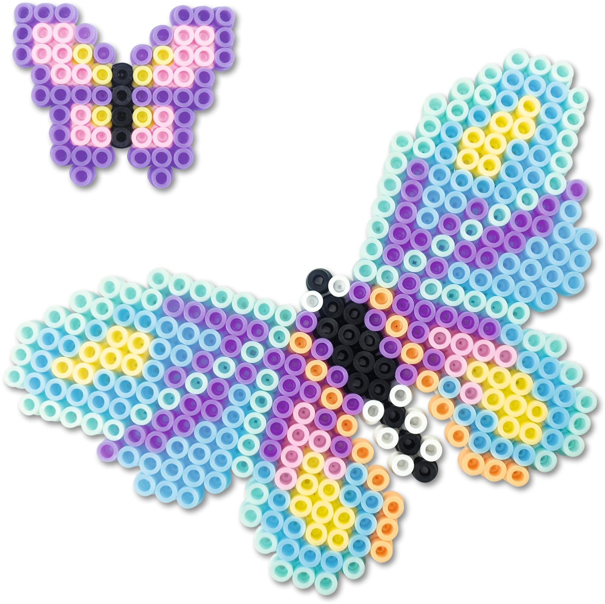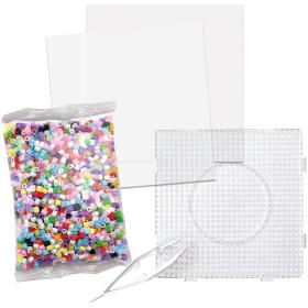Set enthält Materialien zum Gestalten von 10 Bügelperlen Motiven , Motivgrößen 5,5 x 4,5 CM - 14,5 x 8,7 CM