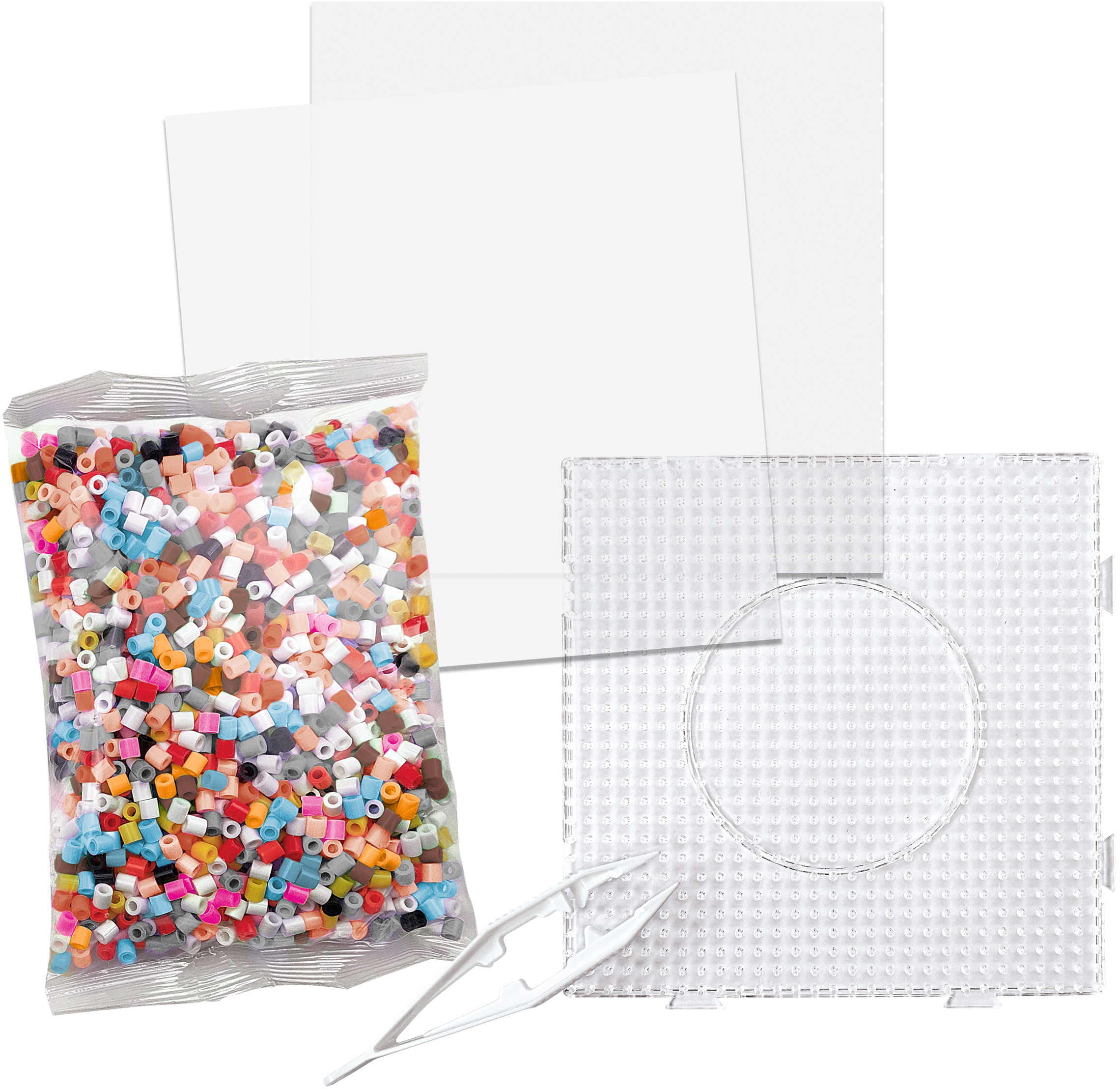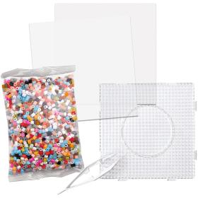 Set enthält Materialien zum Gestalten von 5 Bügelperlen Motiven , Motivgrößen 10,5 x 11,5 CM - 13 x 12,5 CM