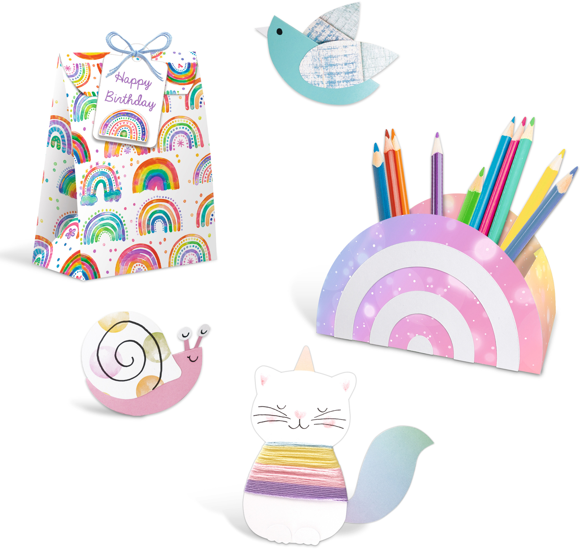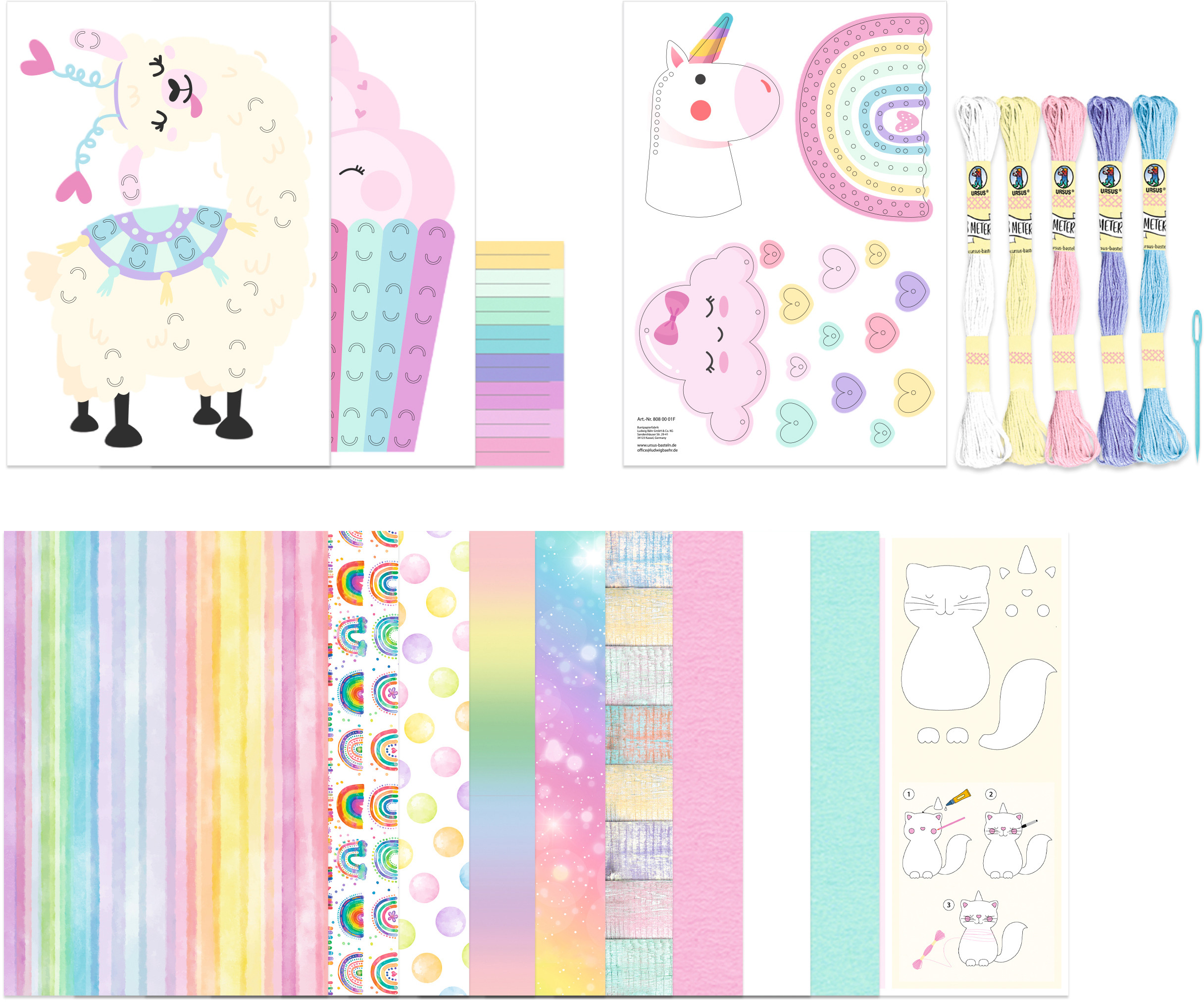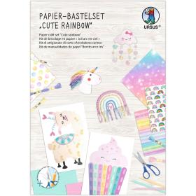 Papier Bastelset Cute Rainbow. Das Set enthält Materialien für kreative Bastelideen inklusive Schnittmusterbogen und Bastelanleitung <br><br>