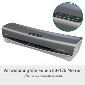Touch Panel mit 4 Einstellungen für 80, 100, 125 und 175 mic sowie Rücklauftaste - ein Fingertipp genügt. Nur 1 Minute Aufwärmzeit. Leistungsstarkes Laminiergerät für den täglichen, professionellen Einsatz.